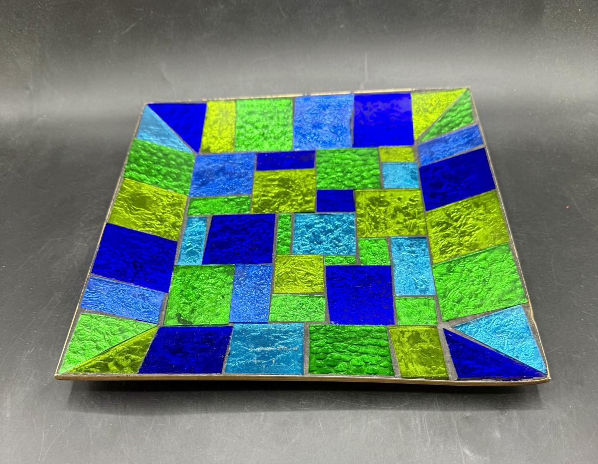 Vintage Mid Century Modern MCM Georges Briard Glass Guild Stained Glass Tray Dish