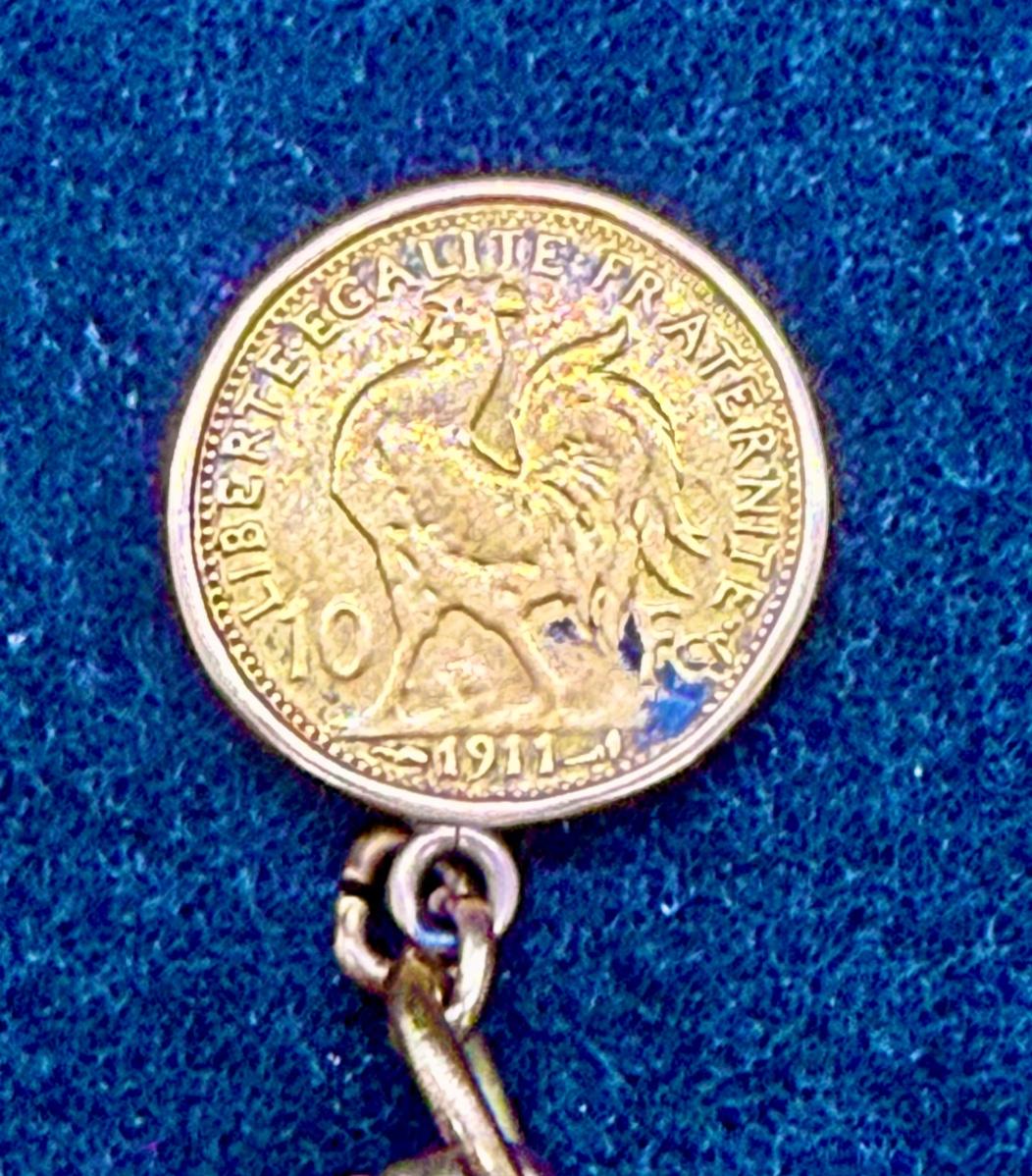 Antique Gold 10 Franc Rooster Coin 1911 on Gold Bracelet