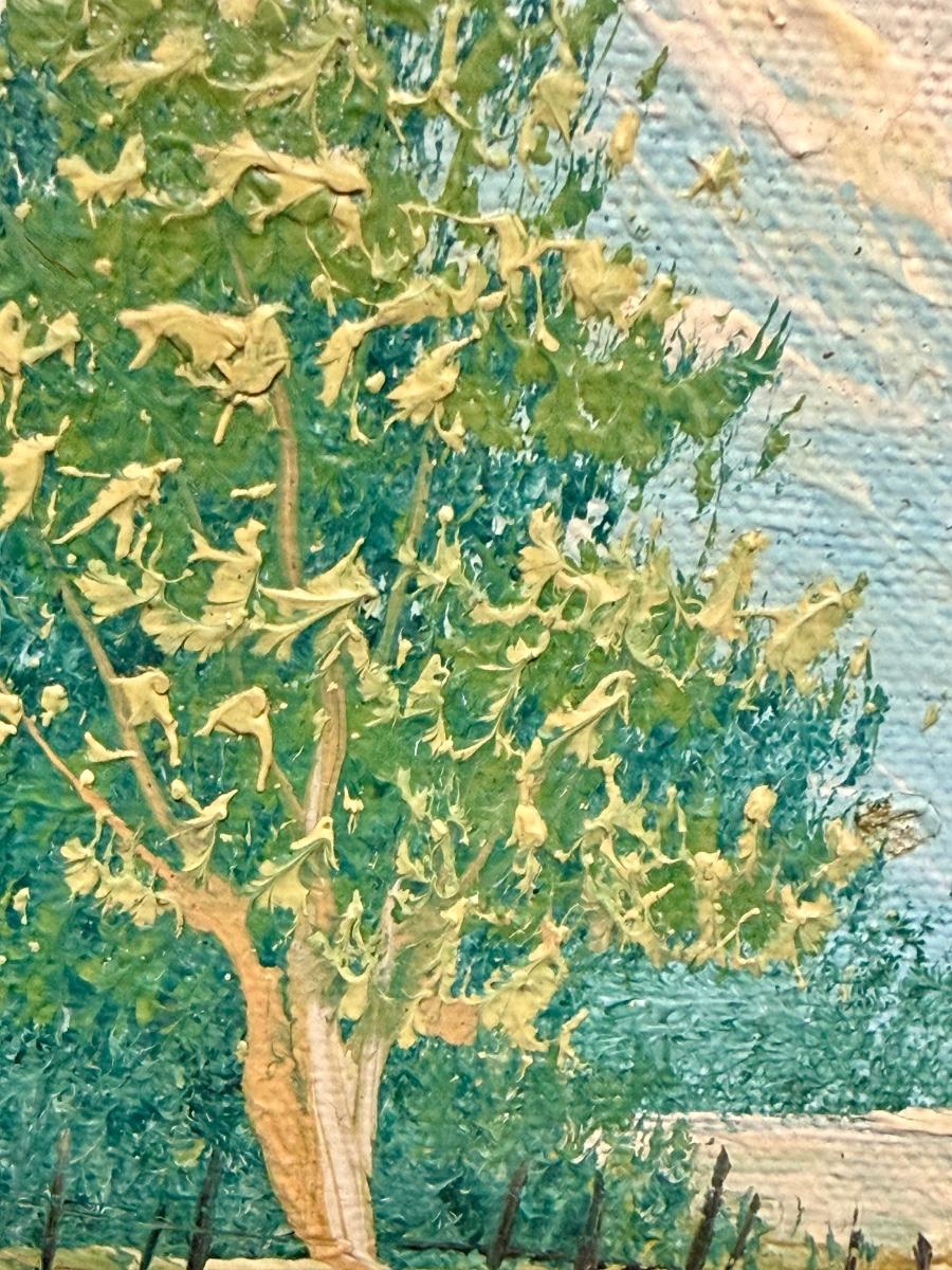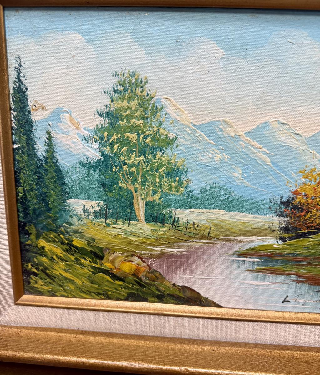 Framed Art: Oil on Canvas Mountain Landscape Painting