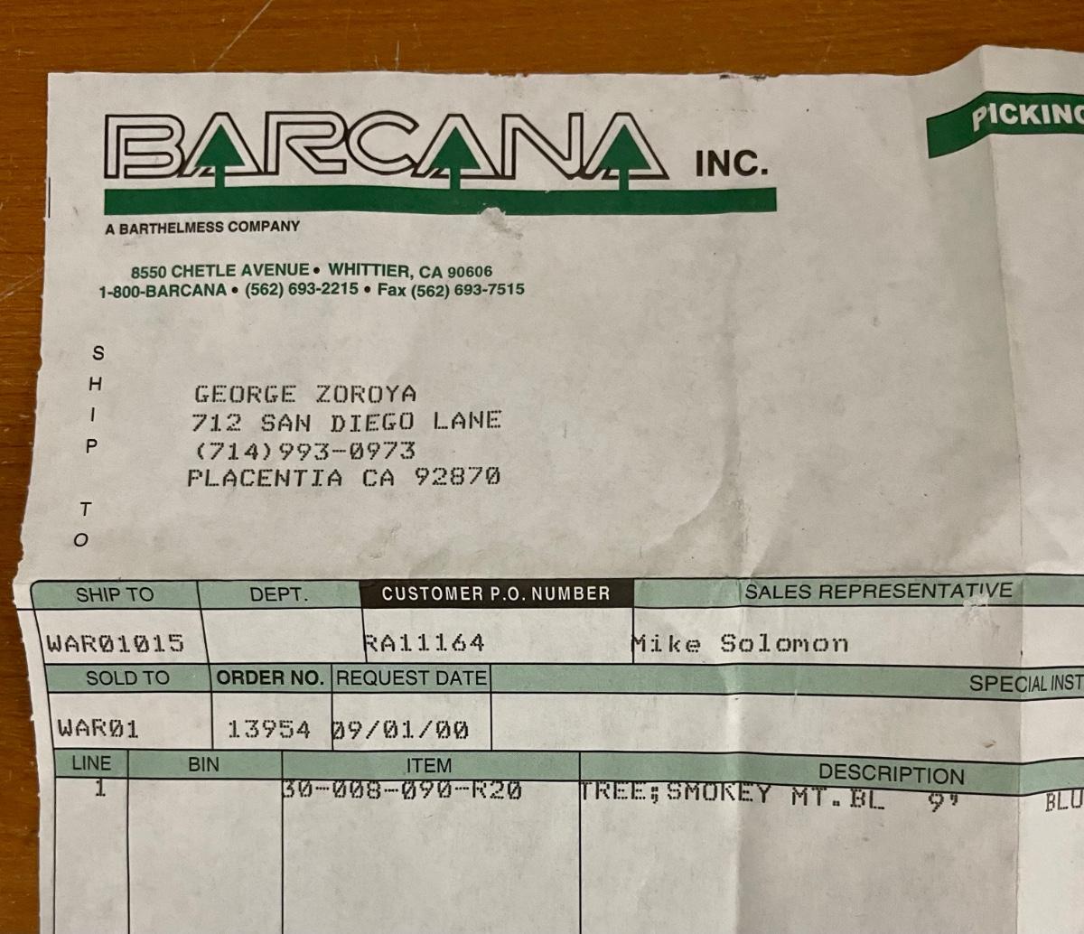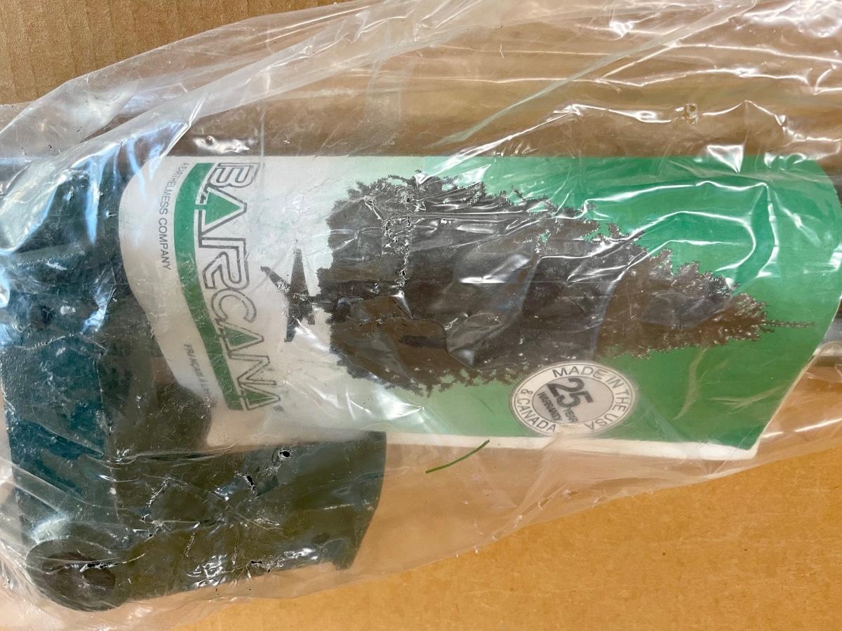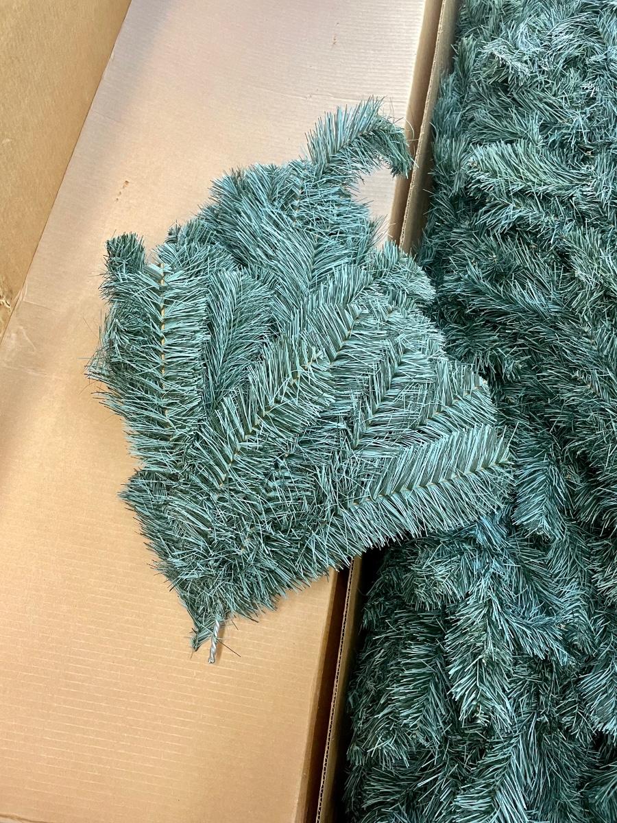 Barcana 9' Artificial Unlit Christmas Tree. Appears to be unused, stored inside original box. Has metal stand and instructions.