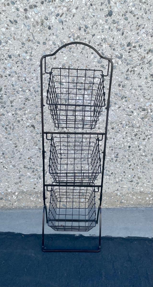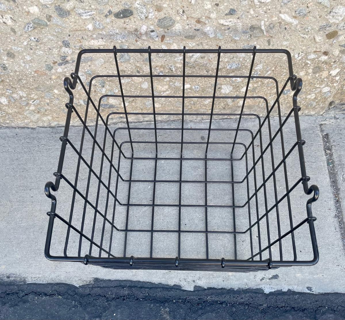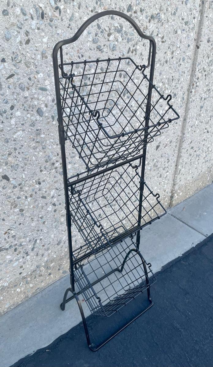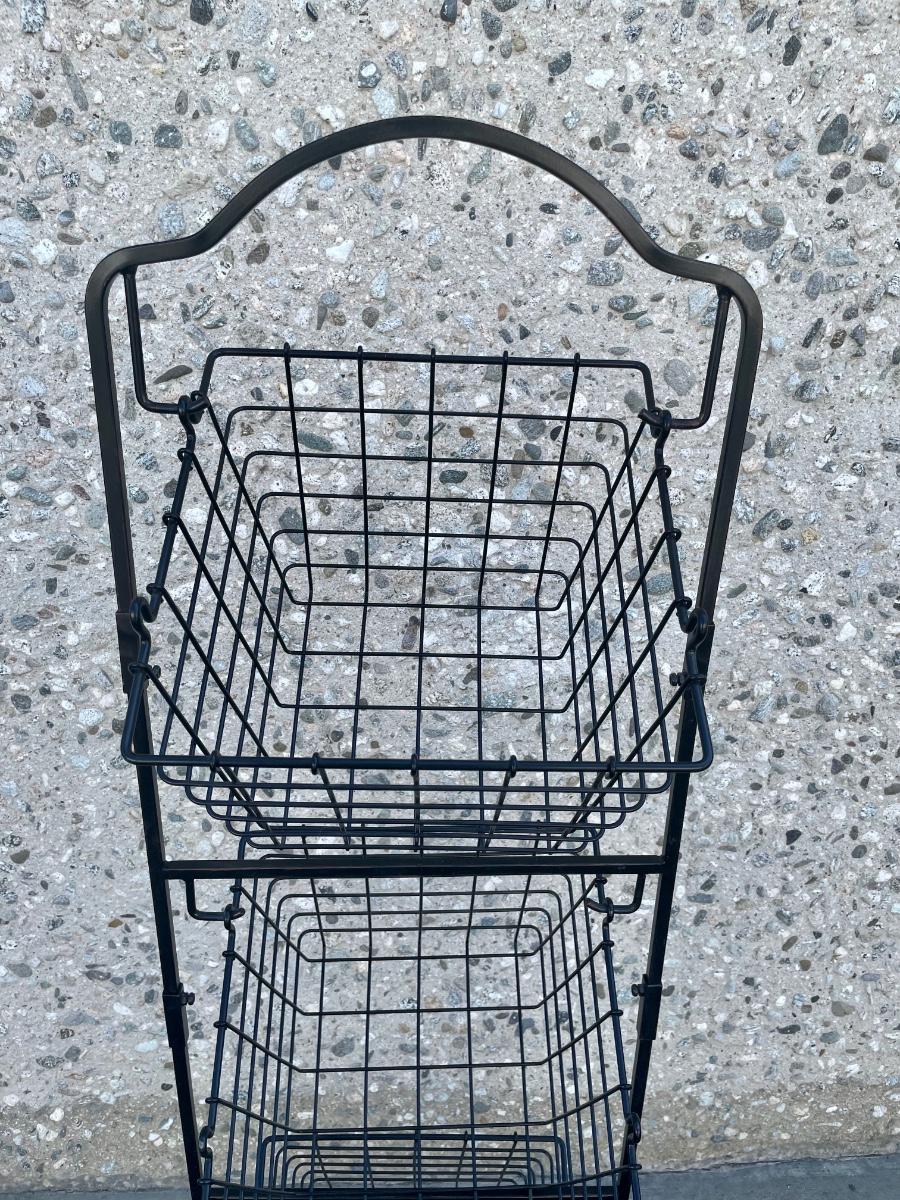 Black Metal Wire Hanging Storage Organizing Baskets for Fruit Veggies Snacks. In good used condition.