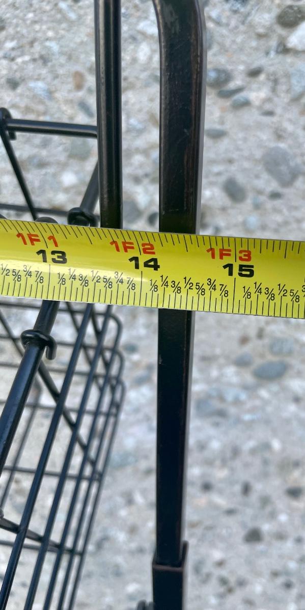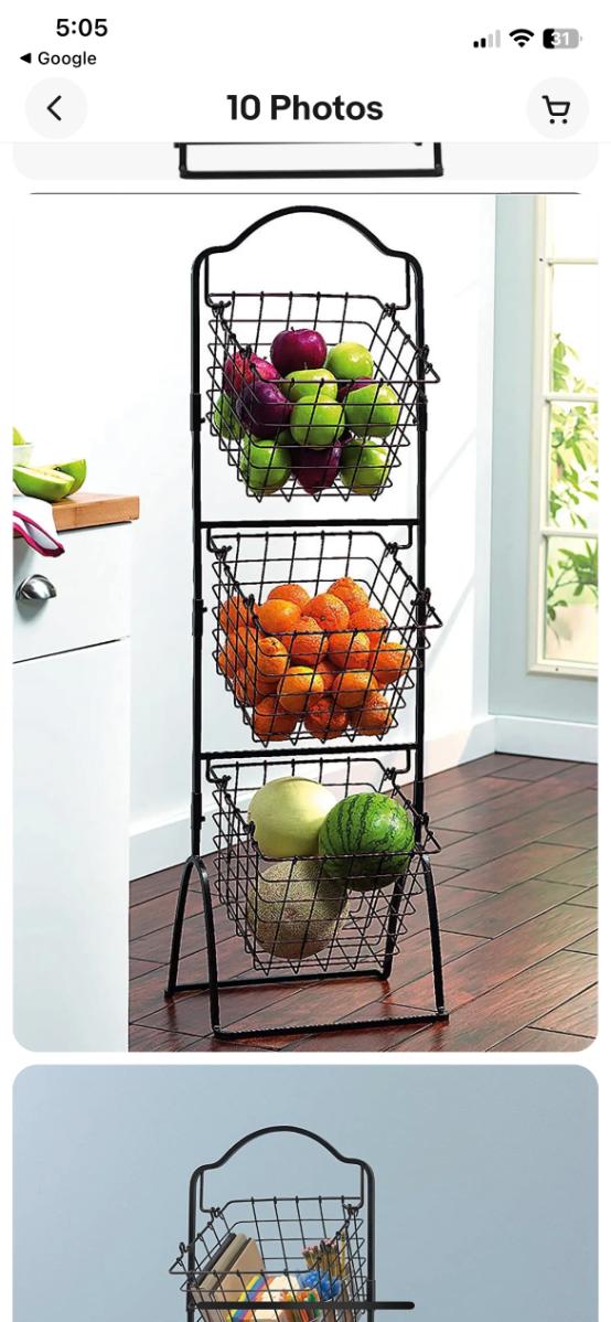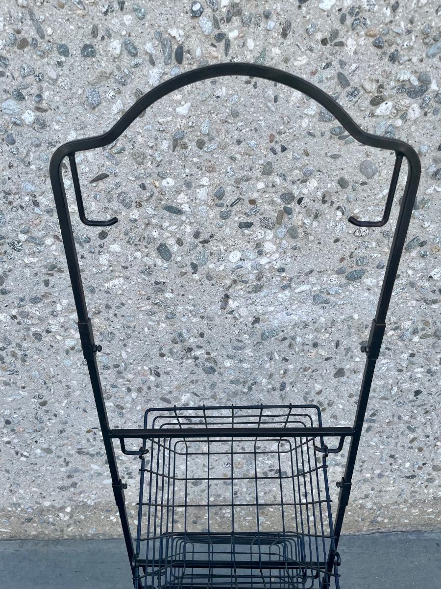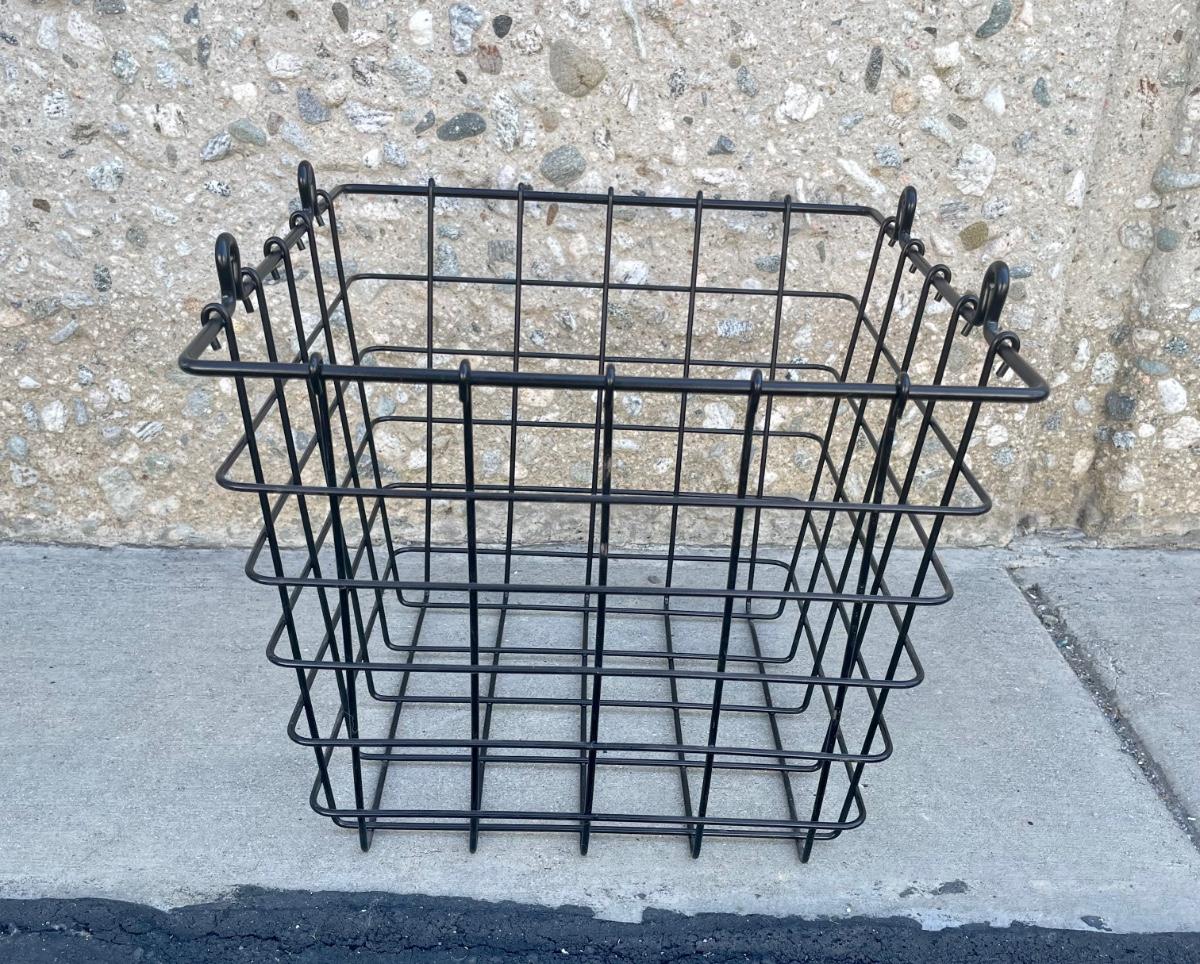 Black Metal Wire Hanging Storage Organizing Baskets for Fruit Veggies Snacks. In good used condition.