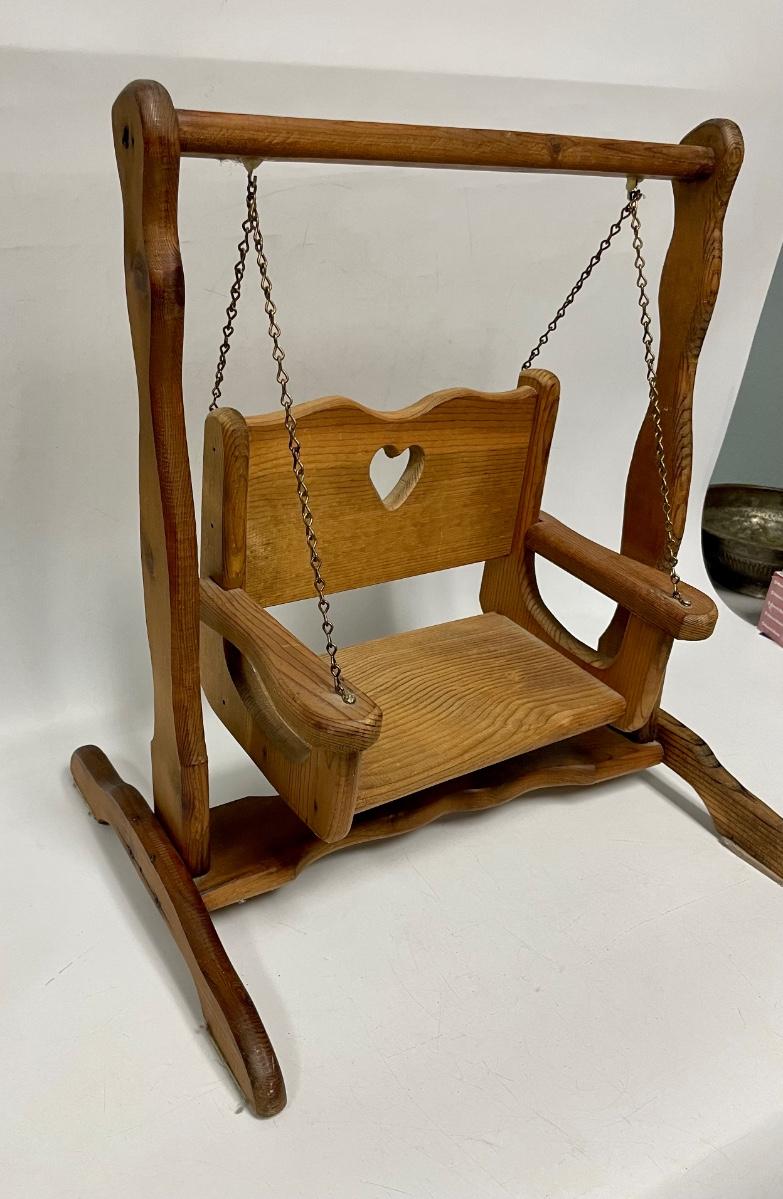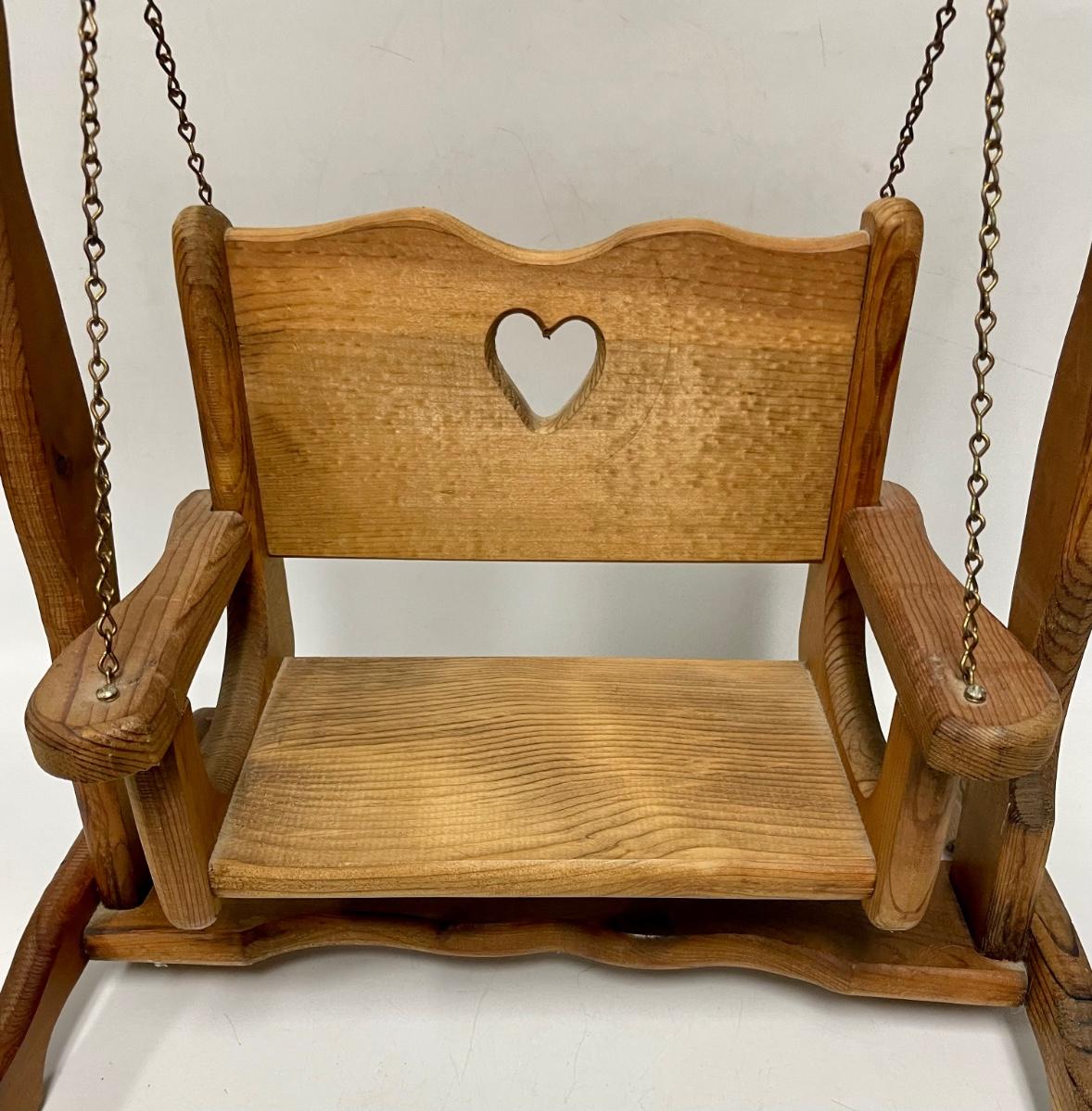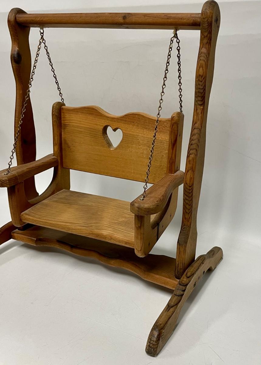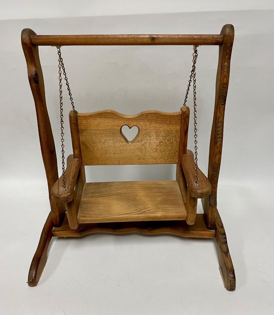 Wooden Glider Swing for Doll or Stuffed Animal. Approx. 18" wide, 19" tall, and 14" deep at the base.