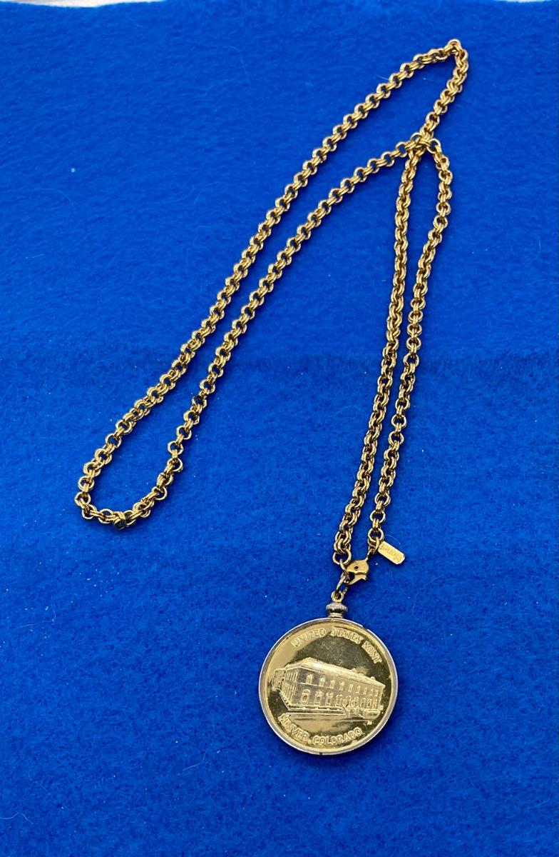 Vintage Department of the Treasury US Mint Medallion Coin Pendant Necklace. From the Denver Colorado Mint,possibly a souvenir item.