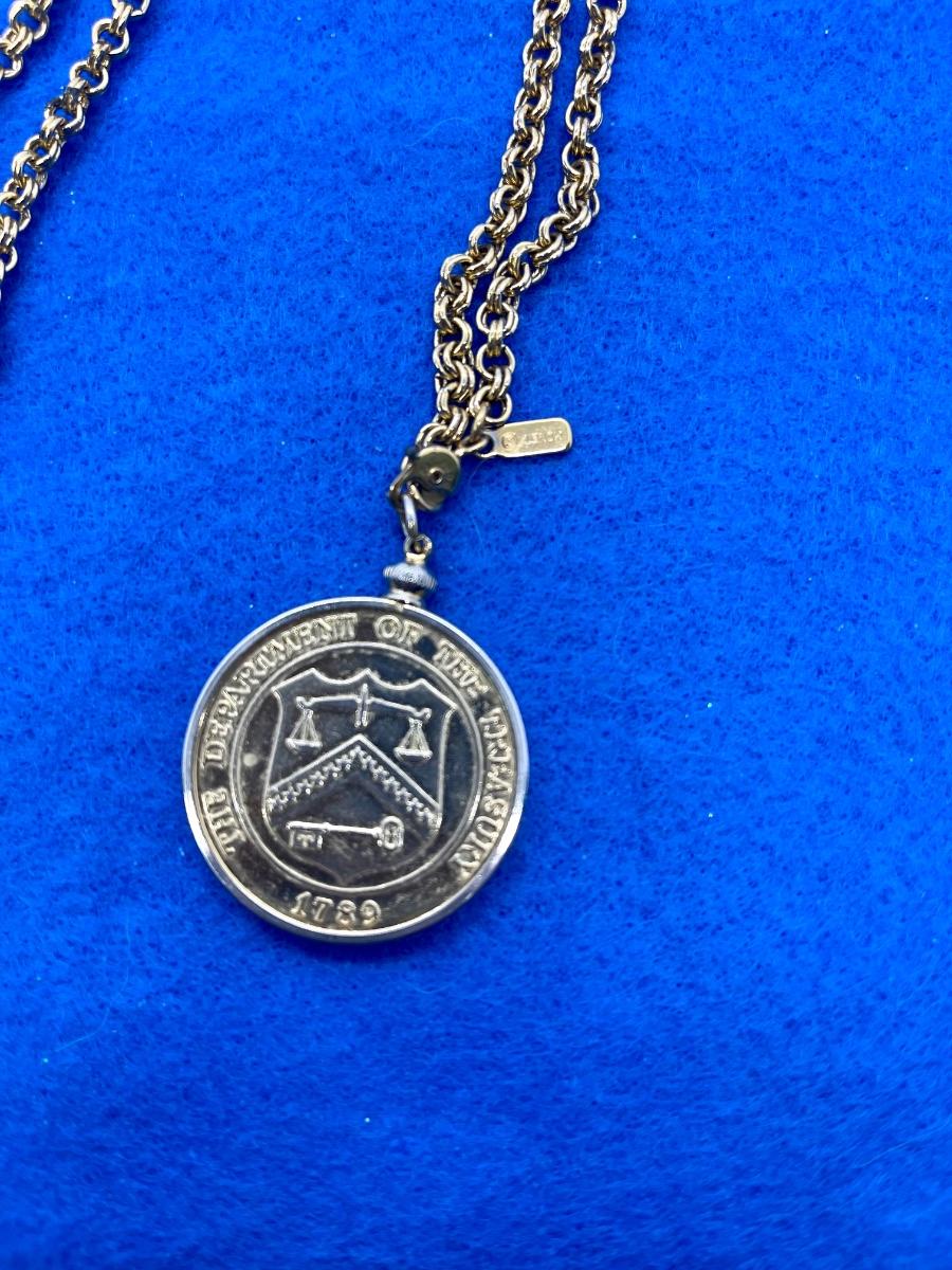 Vintage Department of the Treasury US Mint Medallion Coin Pendant Necklace
