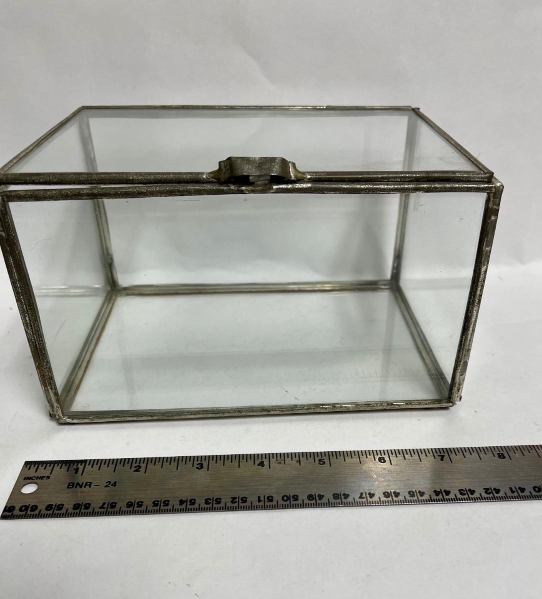 Vintage Glass & Brass Display Box with Hinged Lid