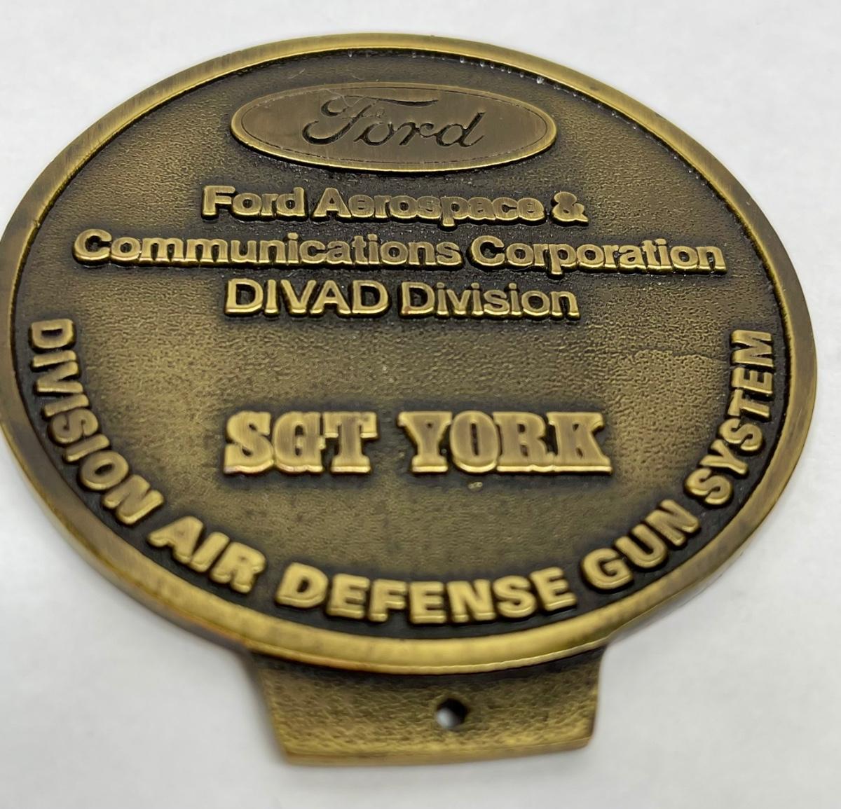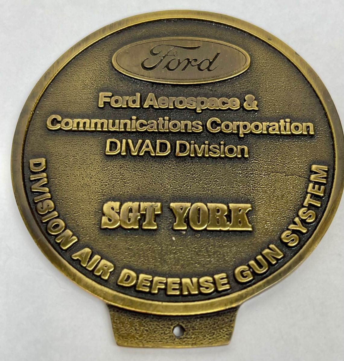 This vintage Sergeant York Ford Aerospace & Communications brass Token is a true collectible piece that any fan of transportation and automobilia would love to add to their collection. The Sgt. York DIVAD project, also known as M247, ran from 1977-1985, when it was ultimately cancelled.