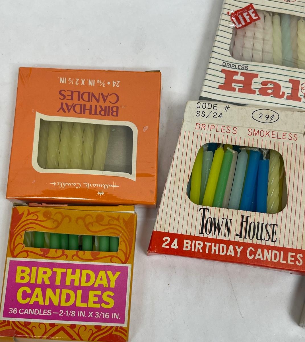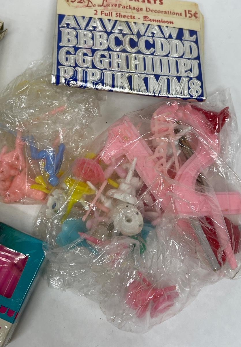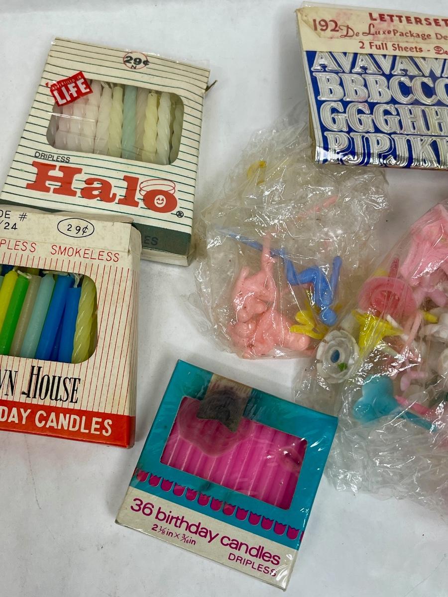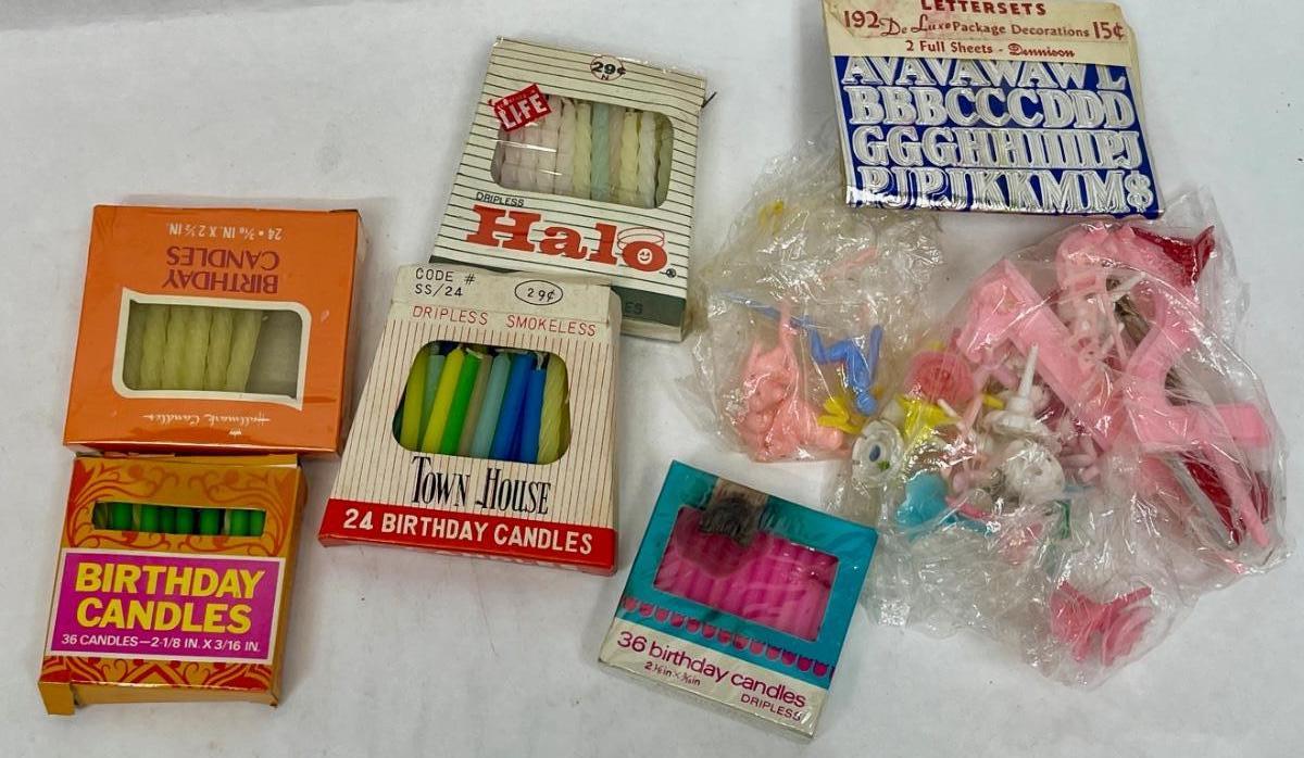 Vintage Birthday Party Cake Decoration - plastic pieces & candles in vintage box