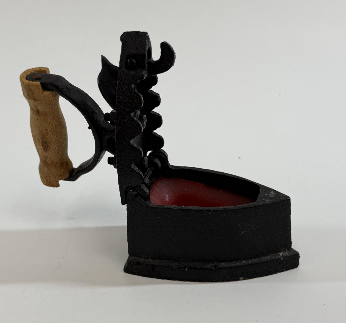 Small Antique Cast Iron or Sad Iron with a Wooden Handle Hand Forged