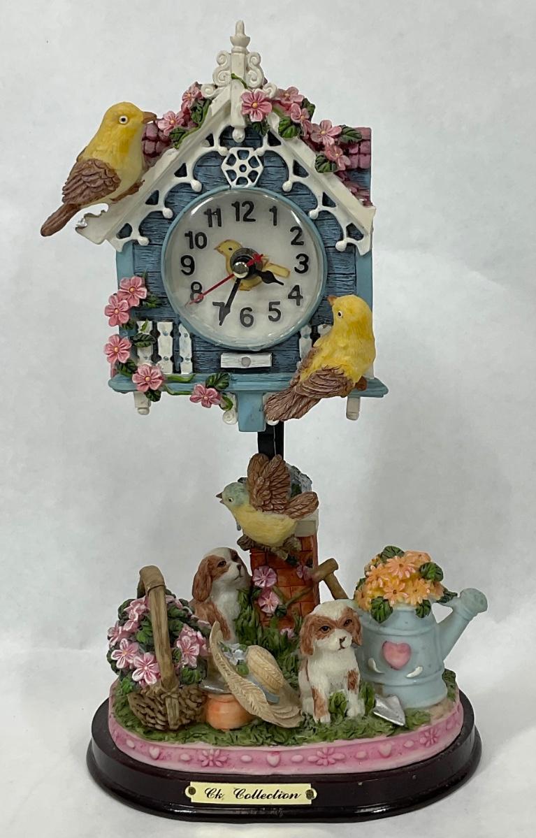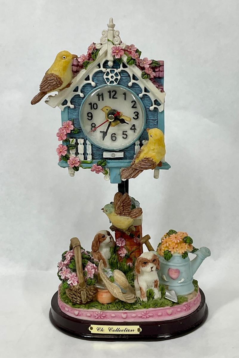 Bird House Mini Clock & Painted Wood Mini Bird House with 2 dogs