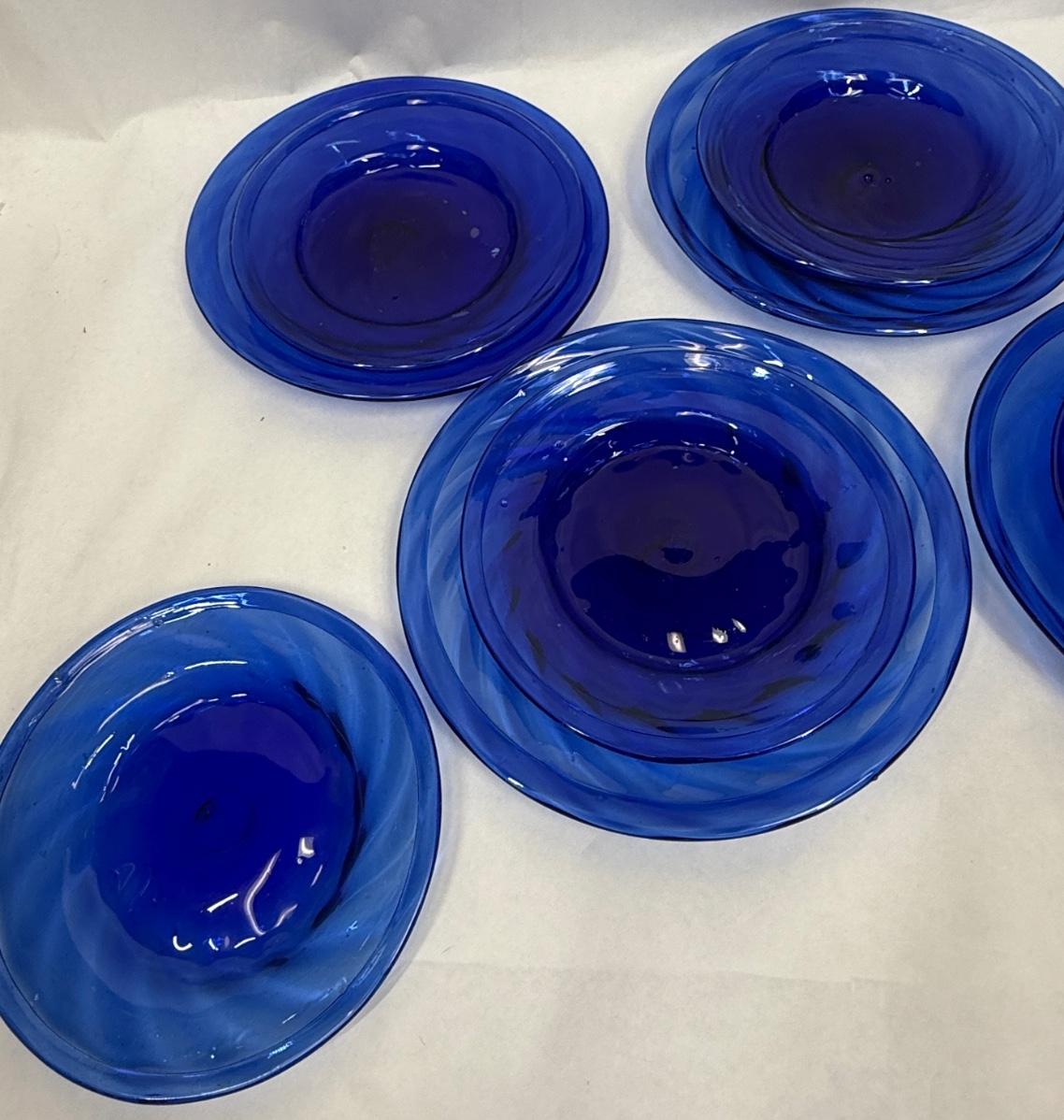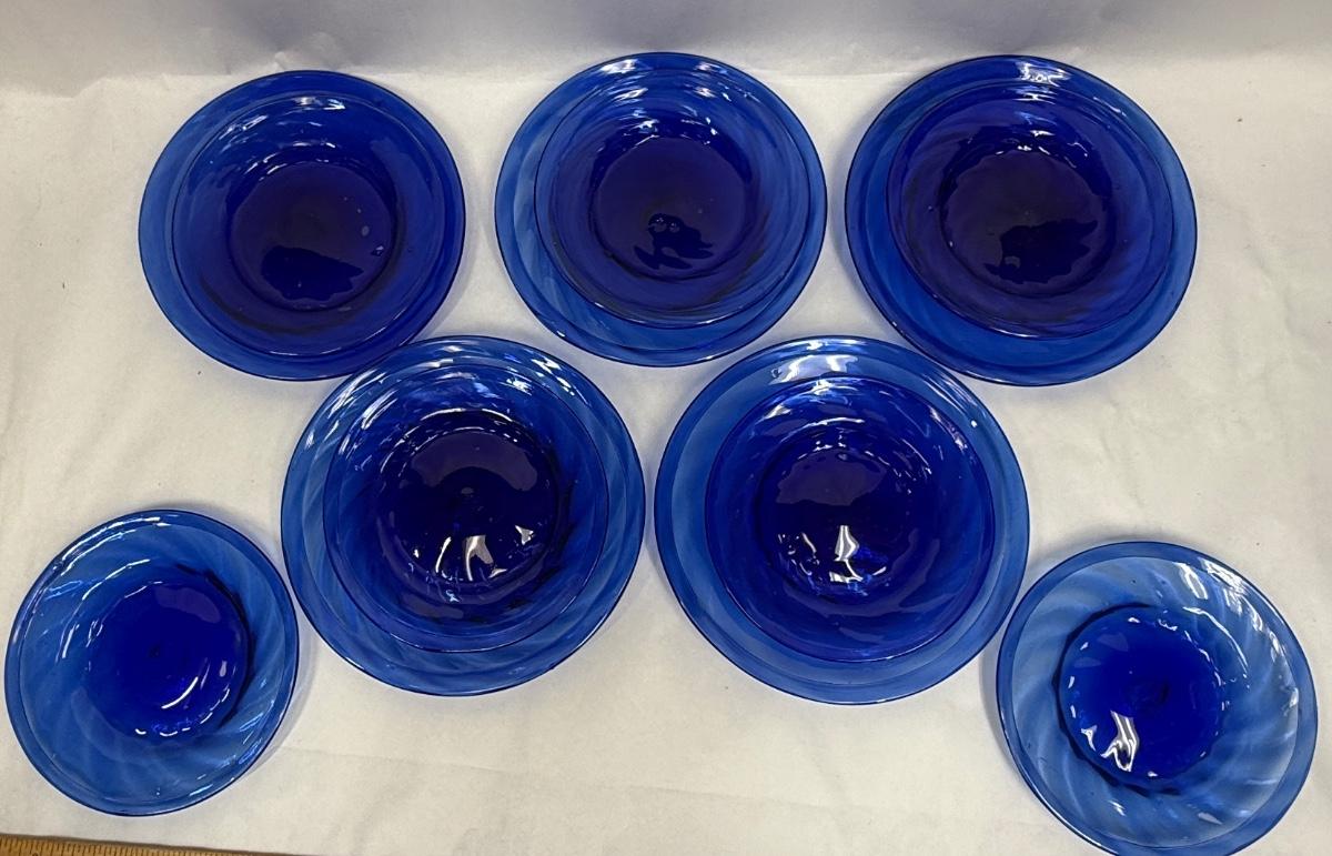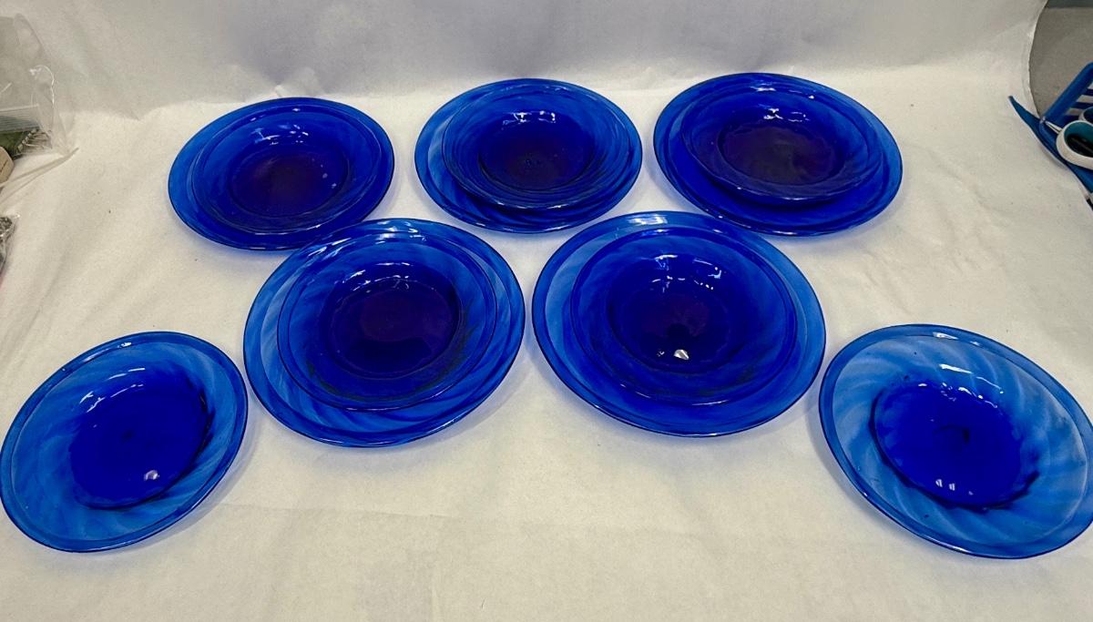 Indigo Blue Glass Plates - 2 different sizes - (5) 7" dia. & (7) 6" dia.