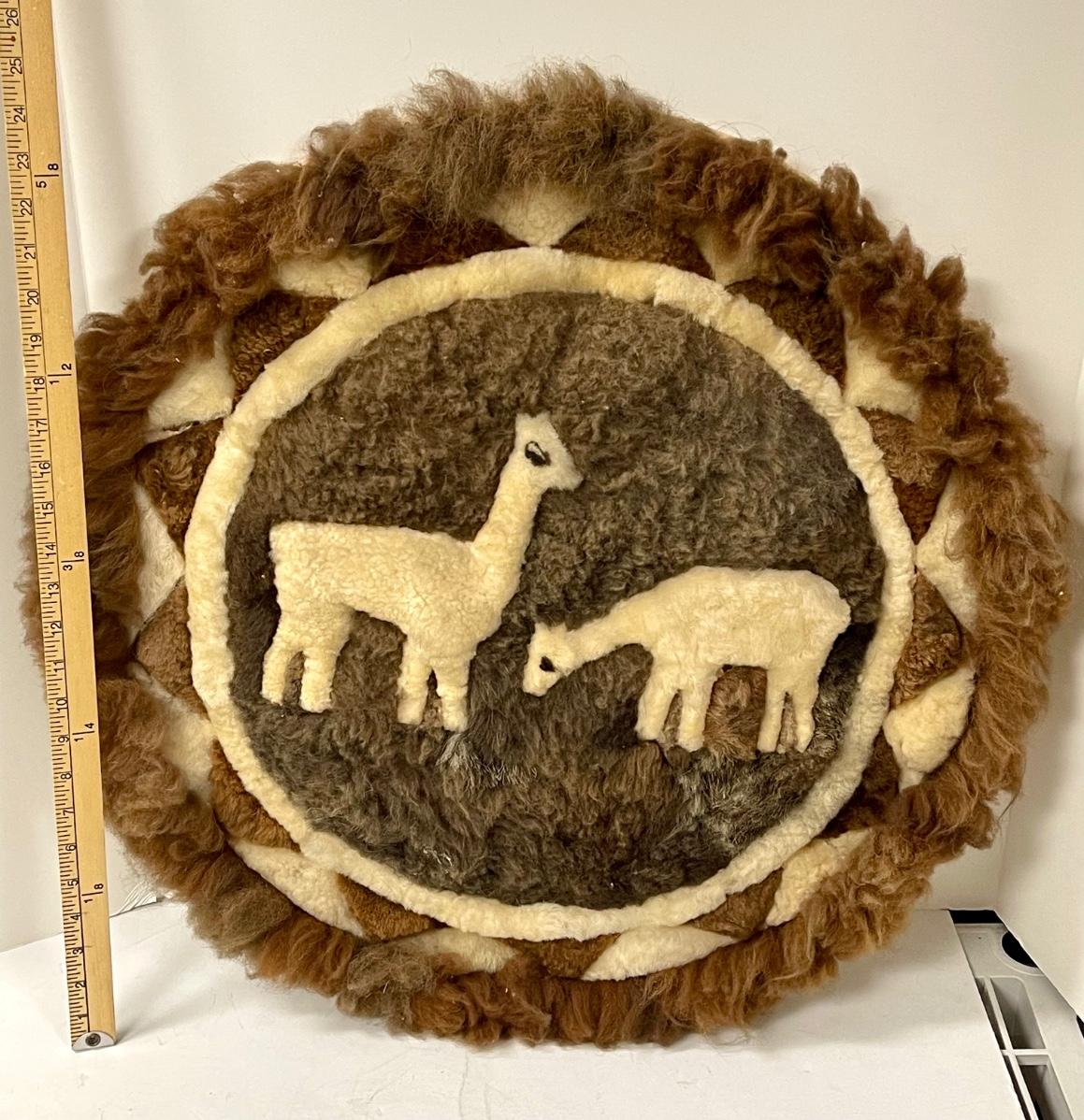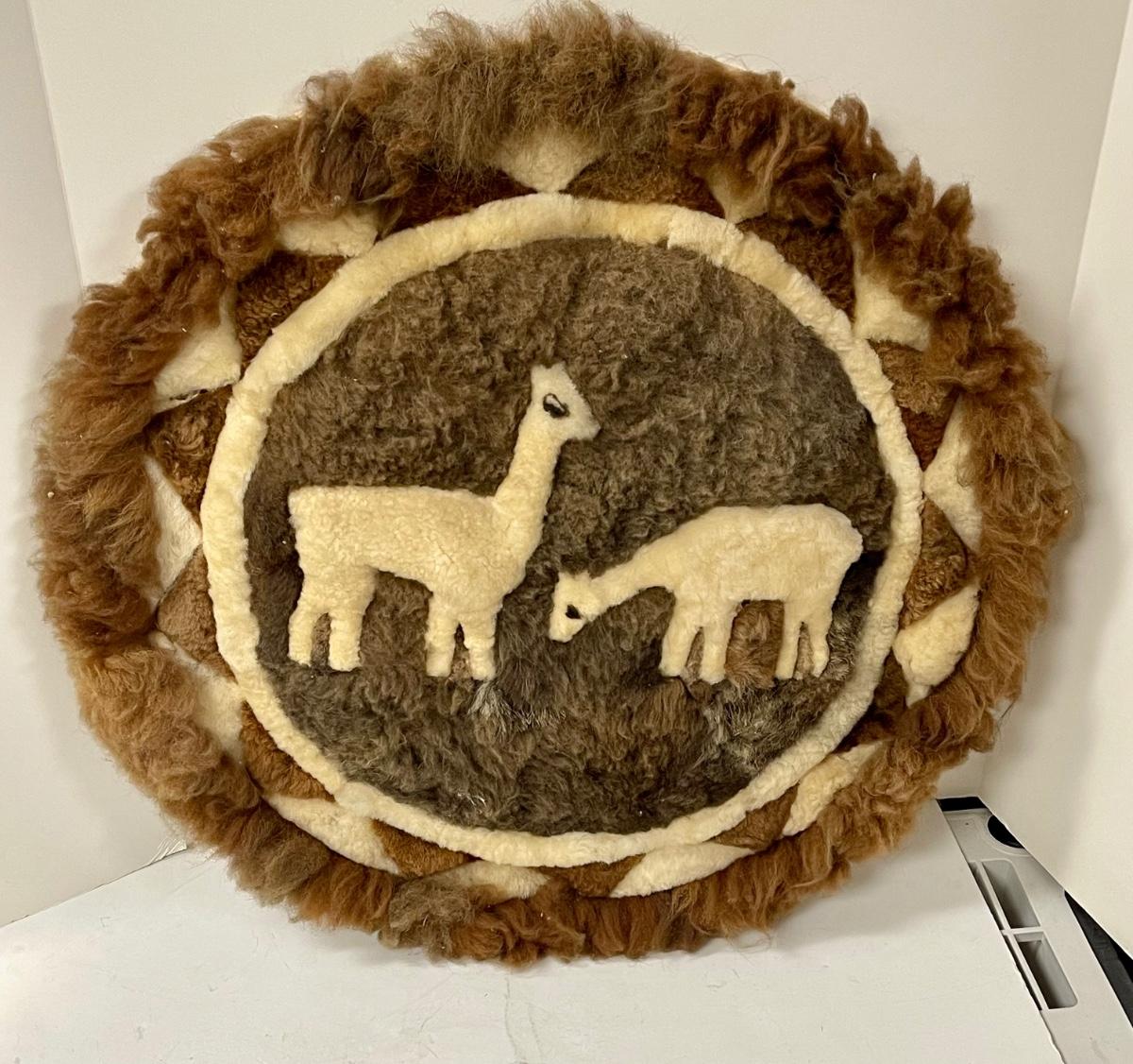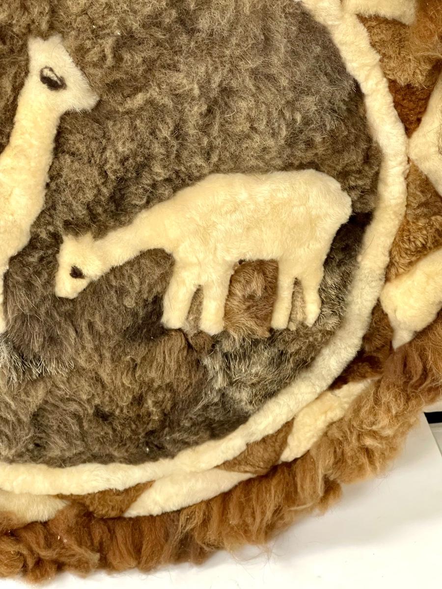 Retro Boho Rustic Alpaca Llama Fur Medallion Wall Hanging Art. In good condition. Large size, about 24" diameter. May be dusty from display.