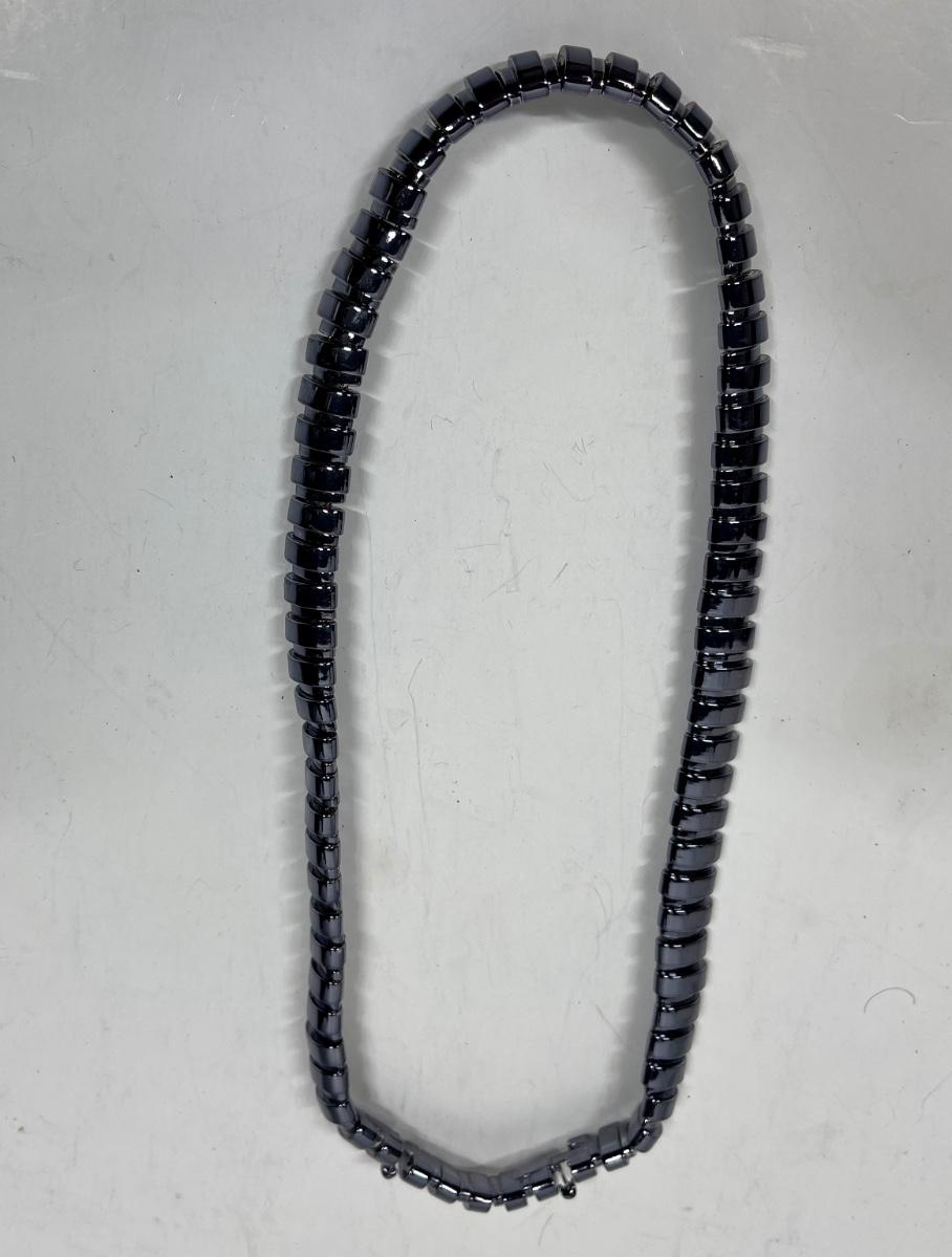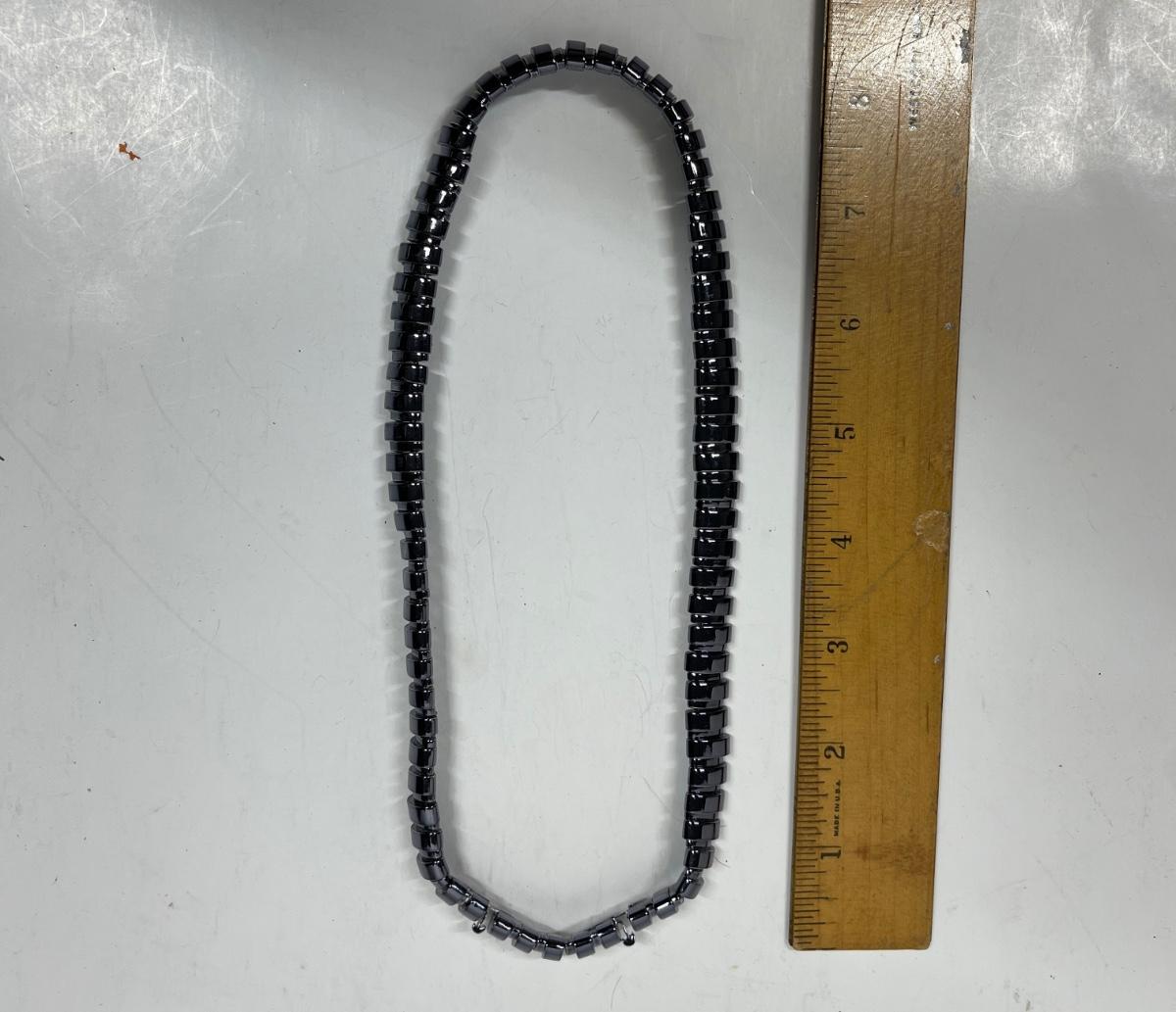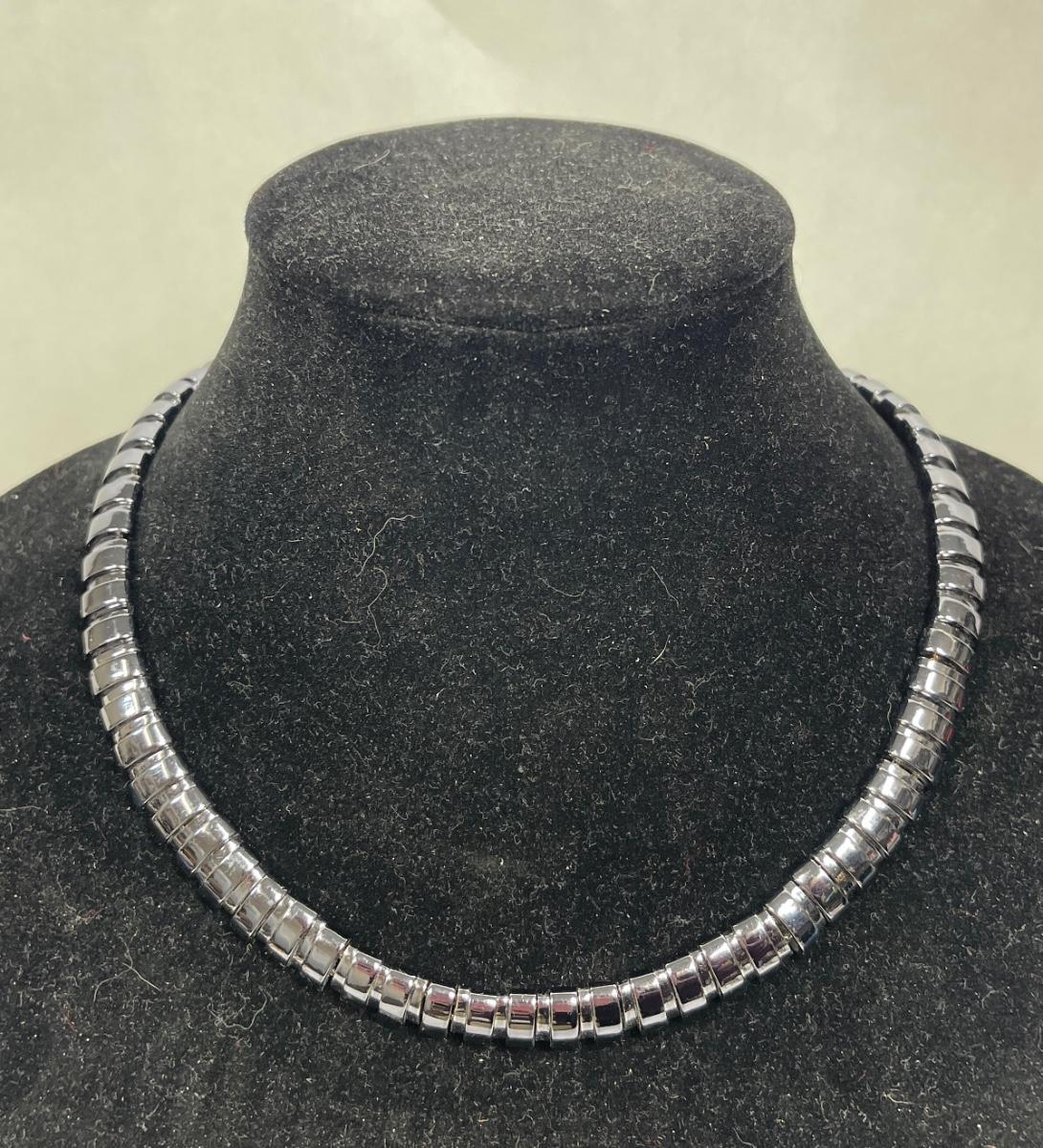 Vintage Black Hematite Snake Chain Necklace Choker Flat Link Semi Rigid