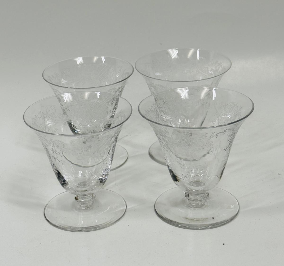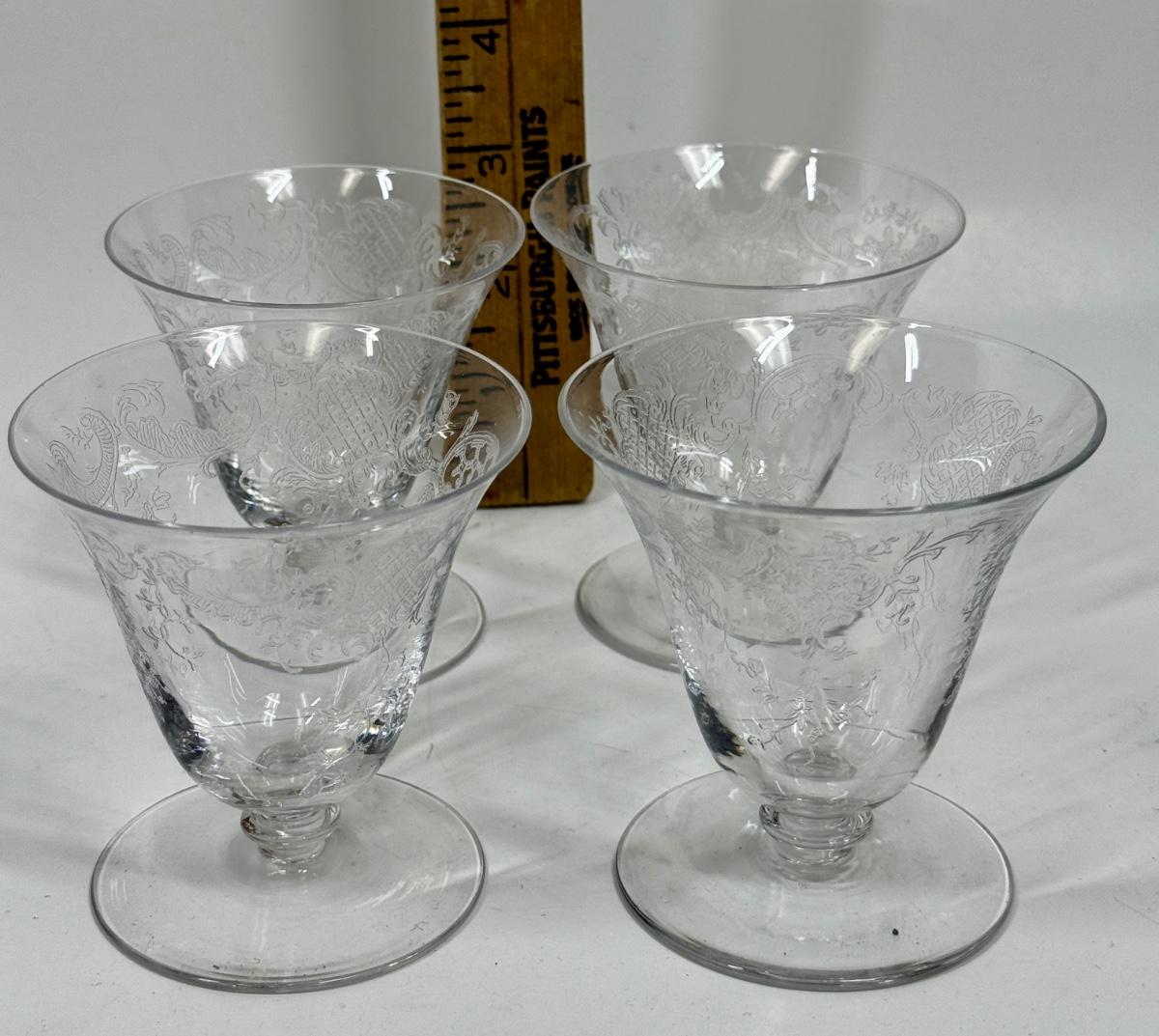 Vintage Depression Glass Etched Juice Glass set5 of 4