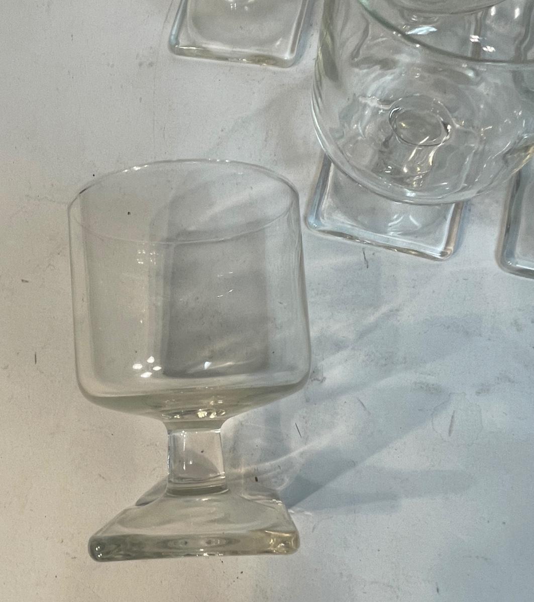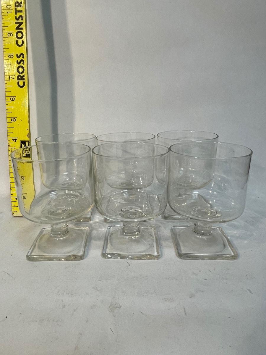 Set of 6 Vintage Style Glass Goblets with Square Bases. Approx 4" tall, made from clear glass.