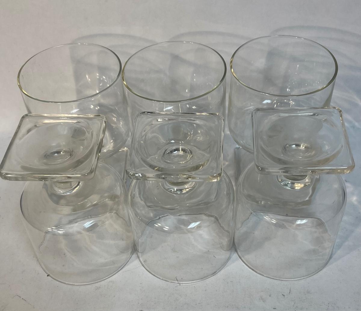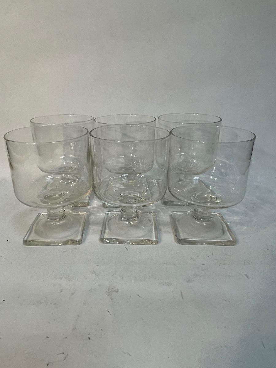 Set of 6 Vintage Style Glass Goblets with Square Bases