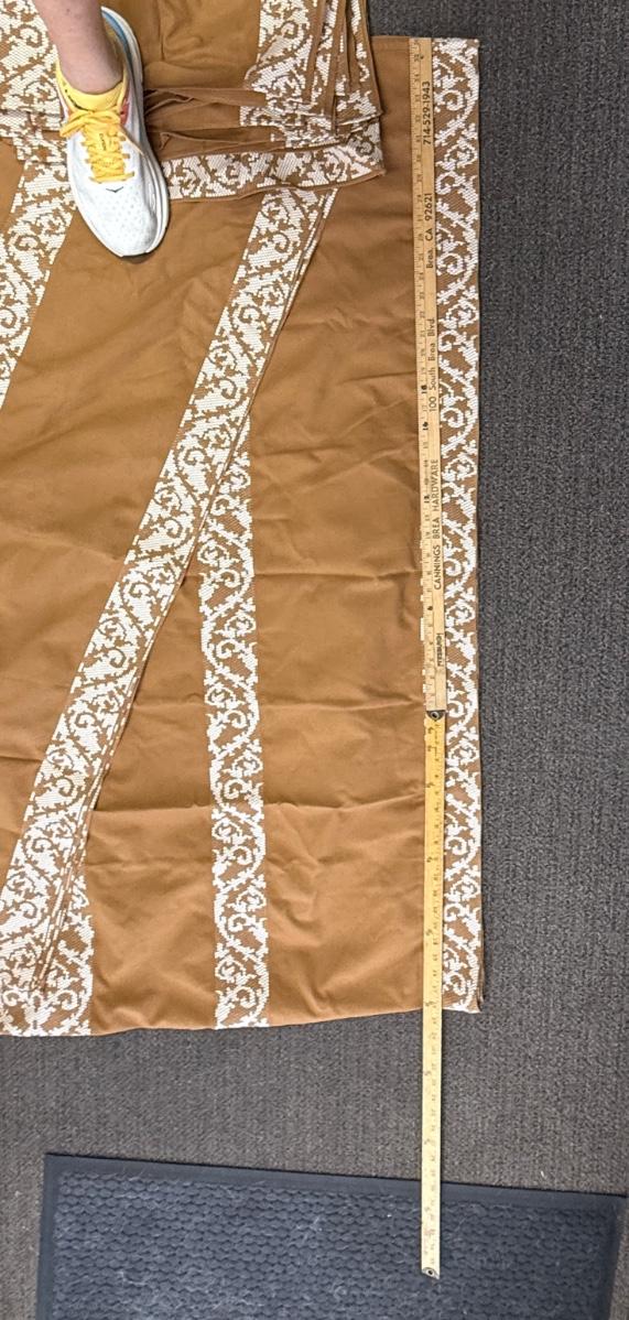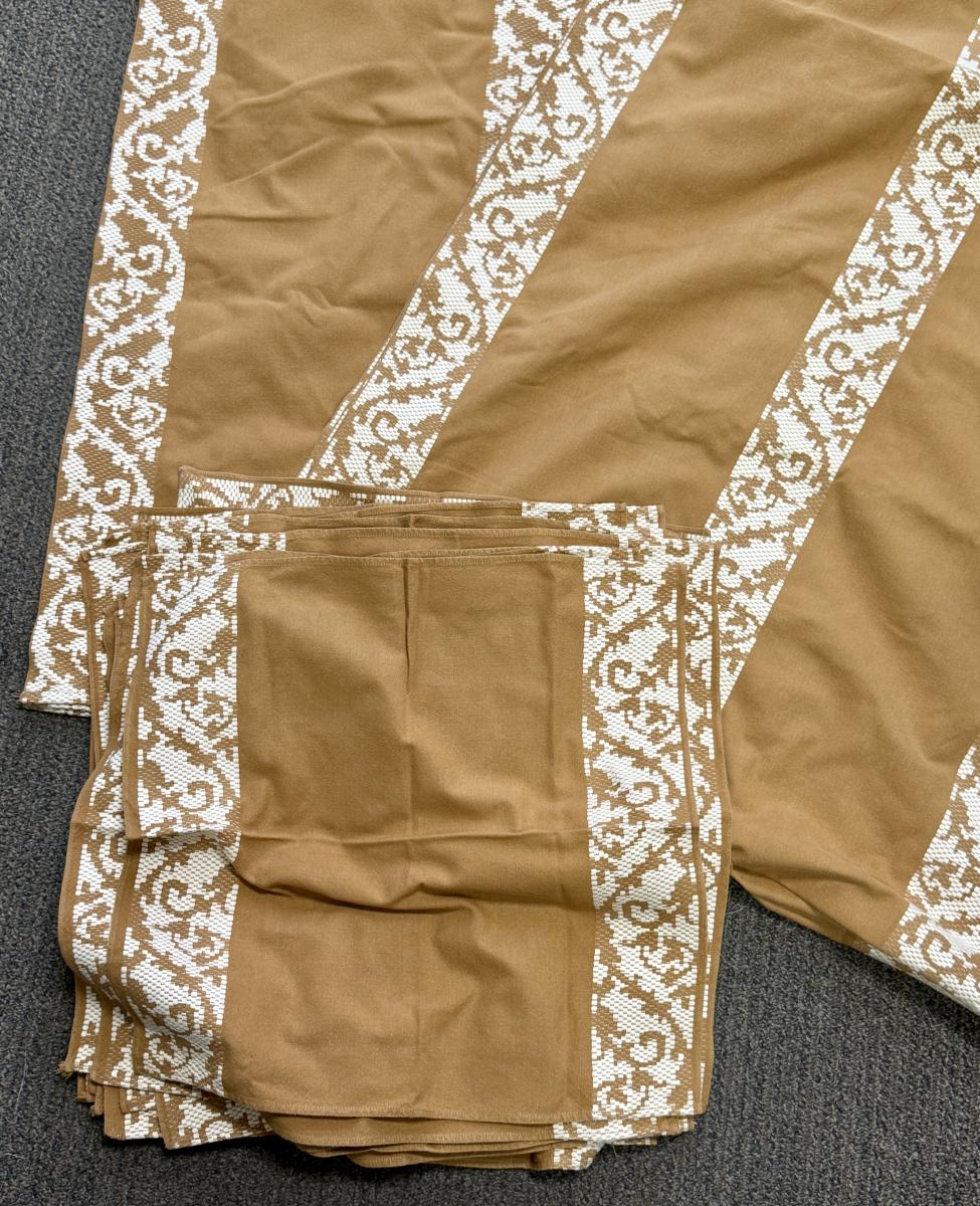 (2) High Quality Woven Cotton Tablecloths 76” x 56” and (18) Napkins brown and creamy white