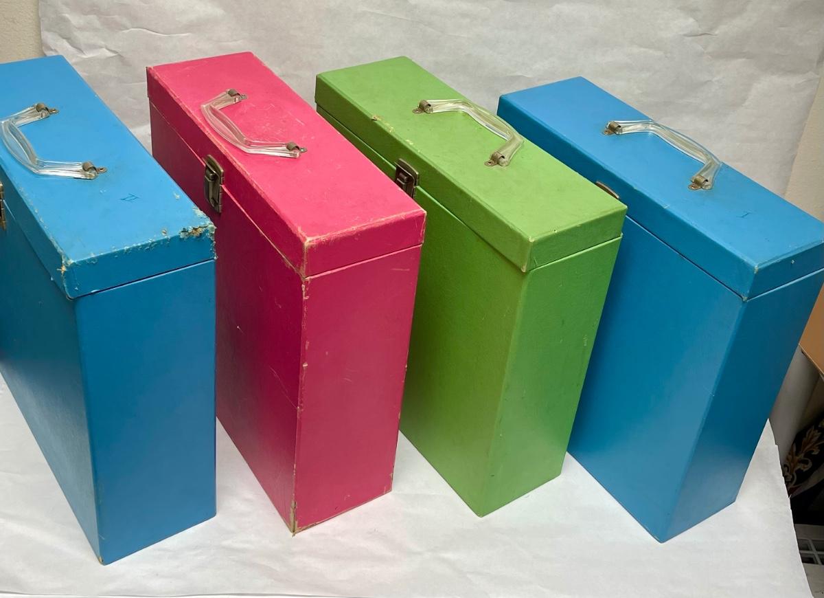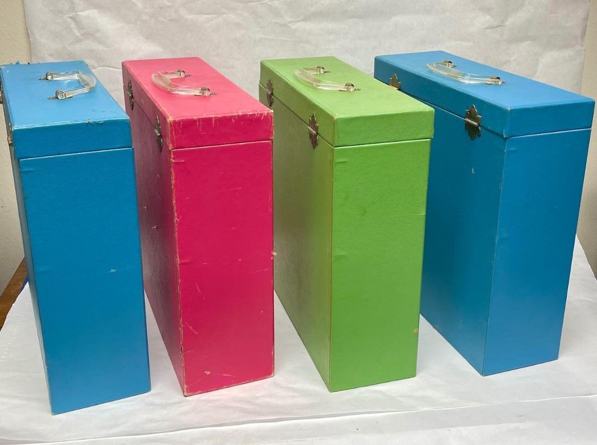LOT of 4 Retro Album Boxes Vintage freestanding Storage Carrying Cases
