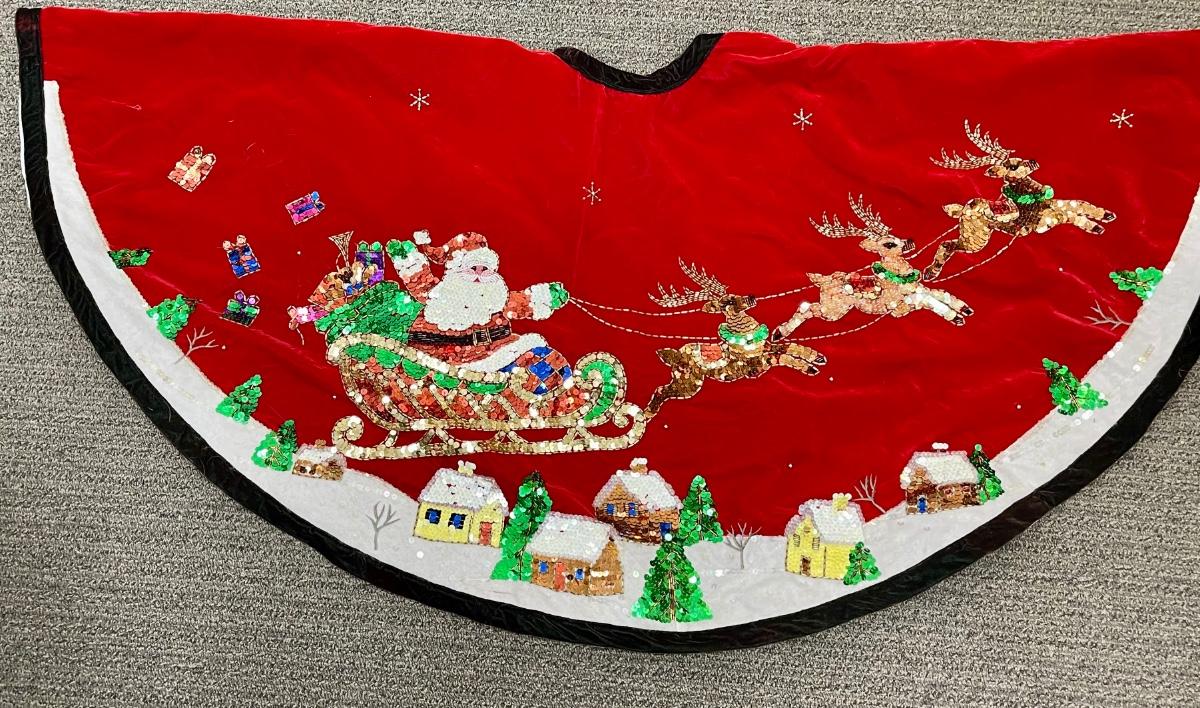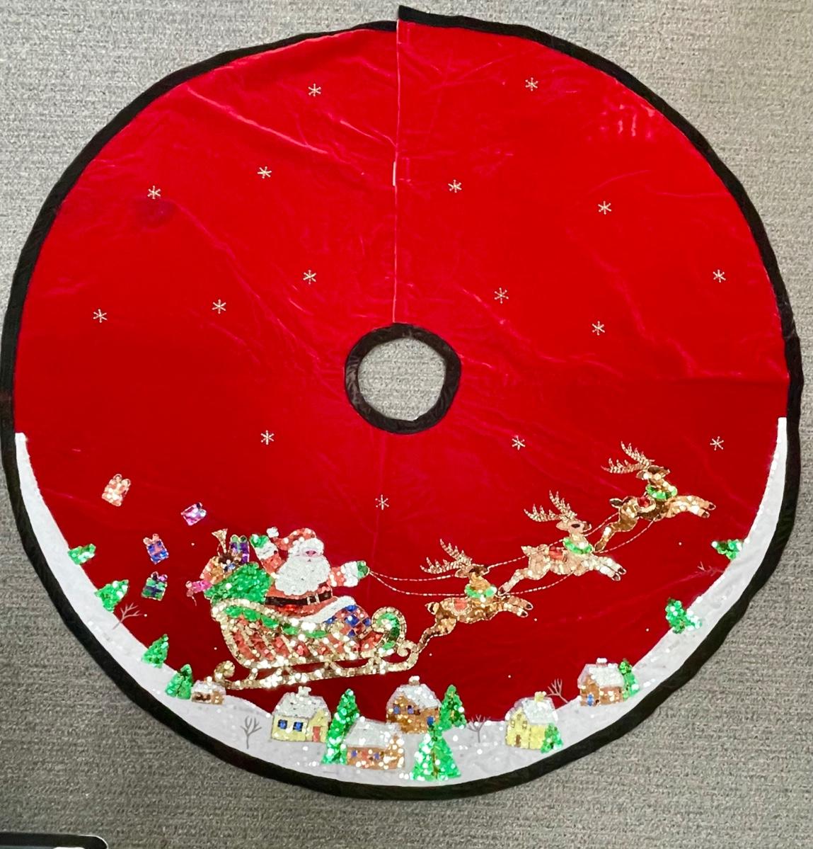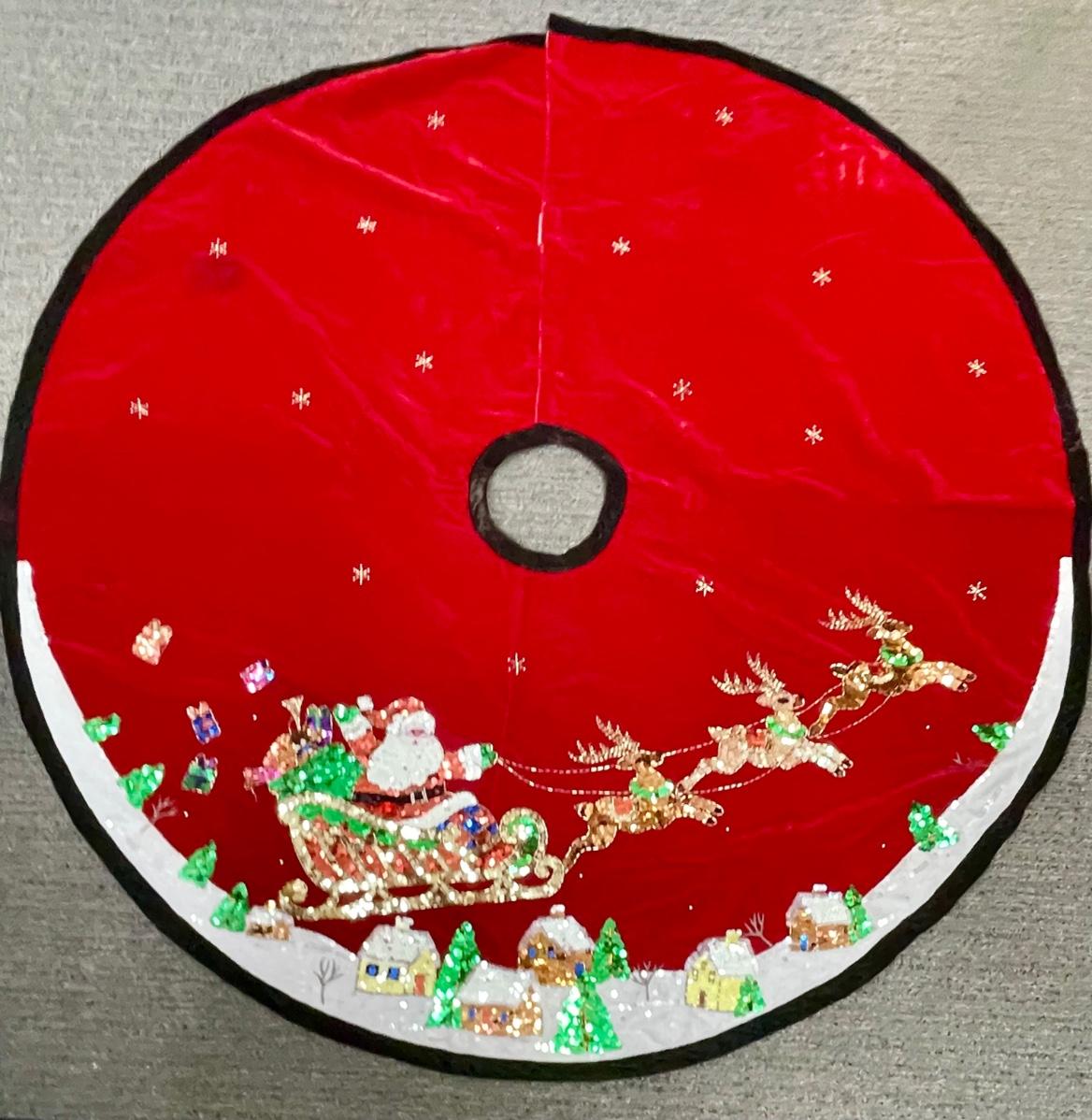 Tree Skirt for Christmas Tree - velvet with sequins - Santa and his Sleigh