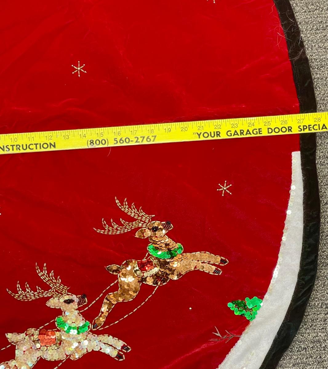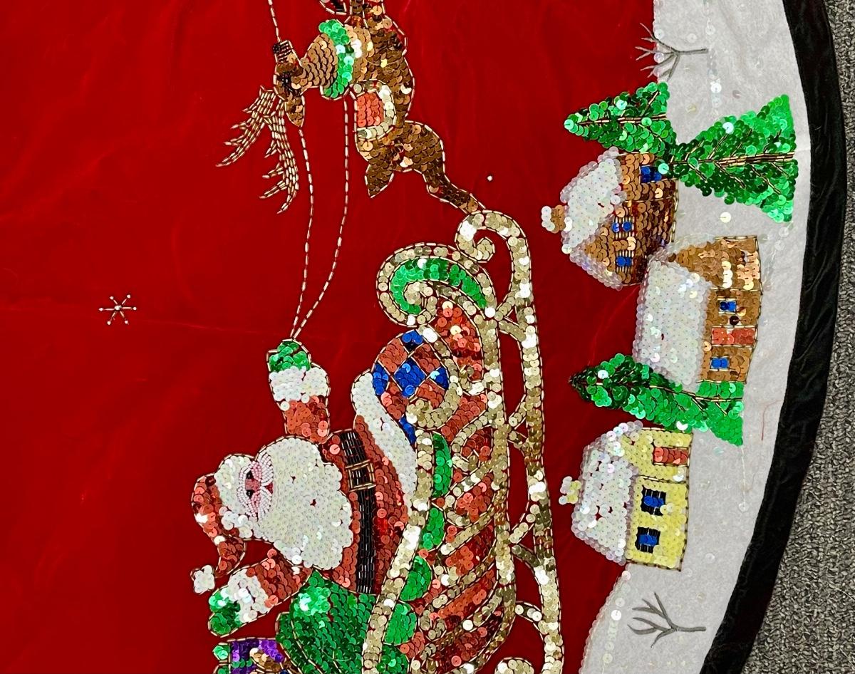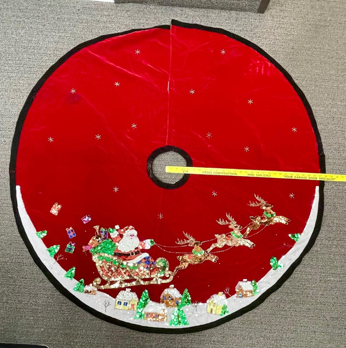 Tree Skirt for Christmas Tree - velvet with sequins - Santa and his Sleigh