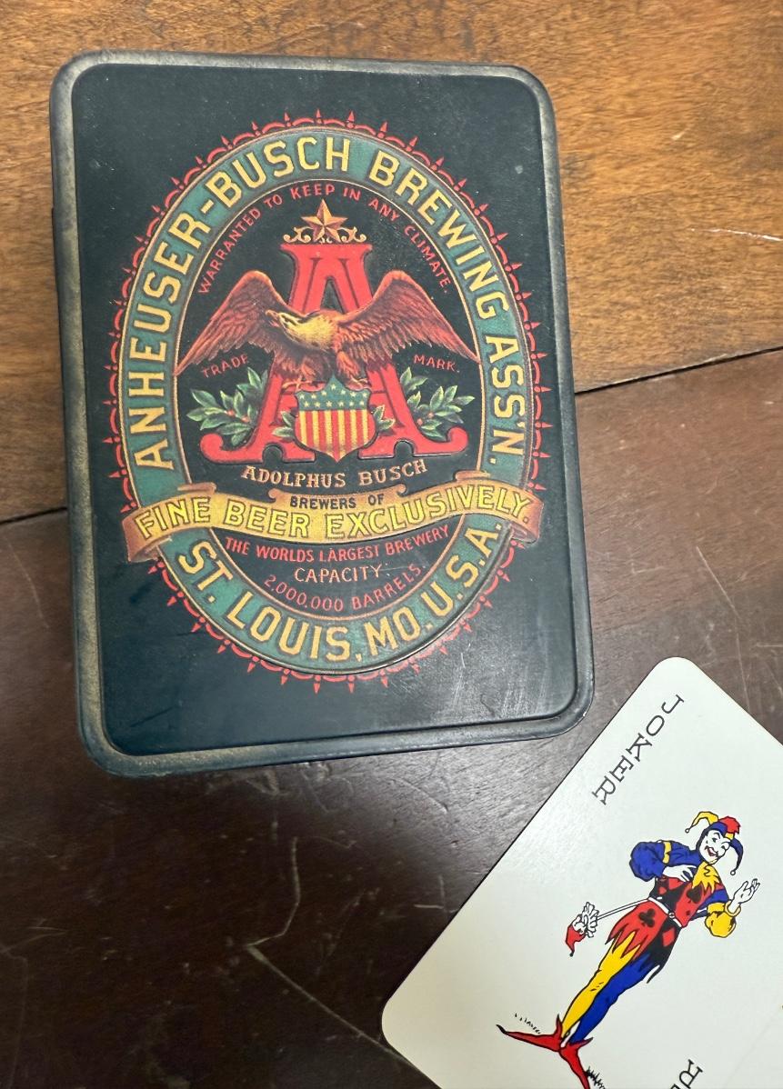 Vintage Budweiser Playing Cards Collectible Tin – Anheuser-Busch St. Louis Classic Set with Playing Cards