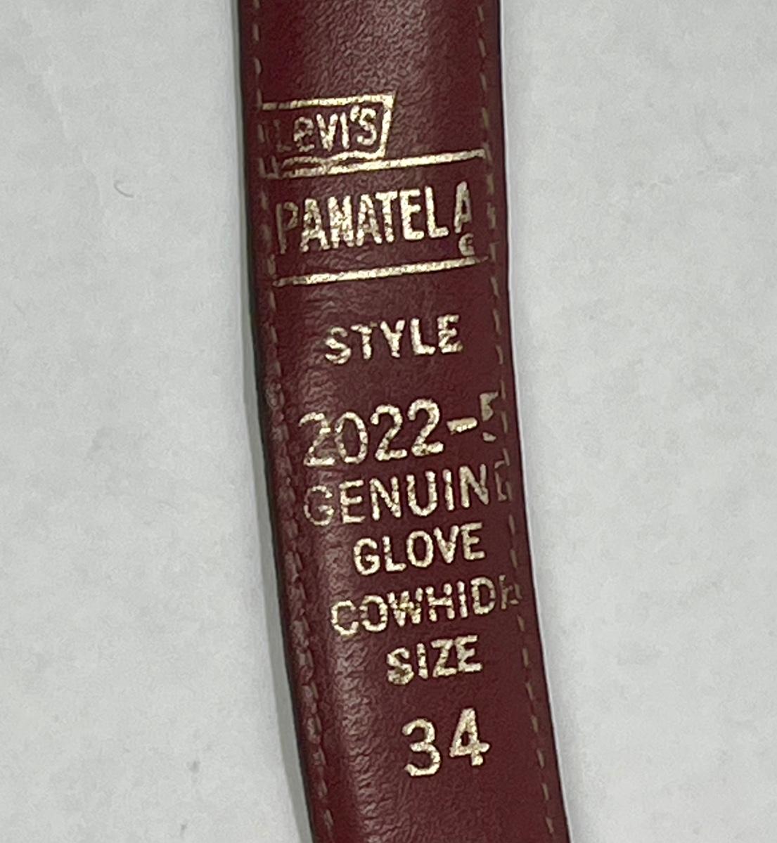 34" leather belt. Intricate design of belt buckle. Good condition.