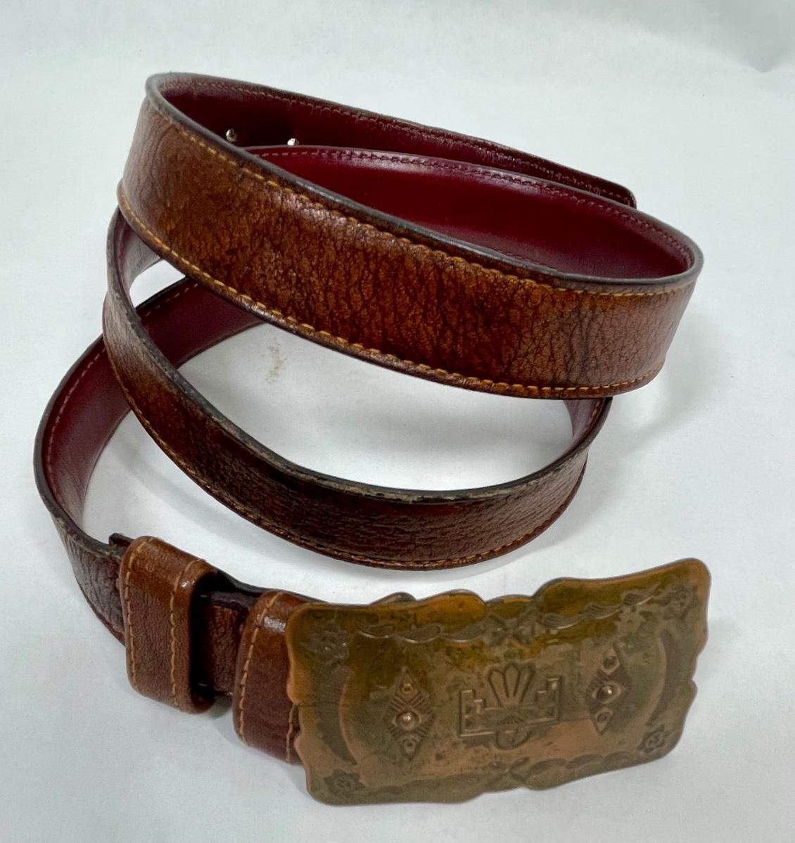Copper Belt Buckle - Native American Thunderbird Design and Leather Belt