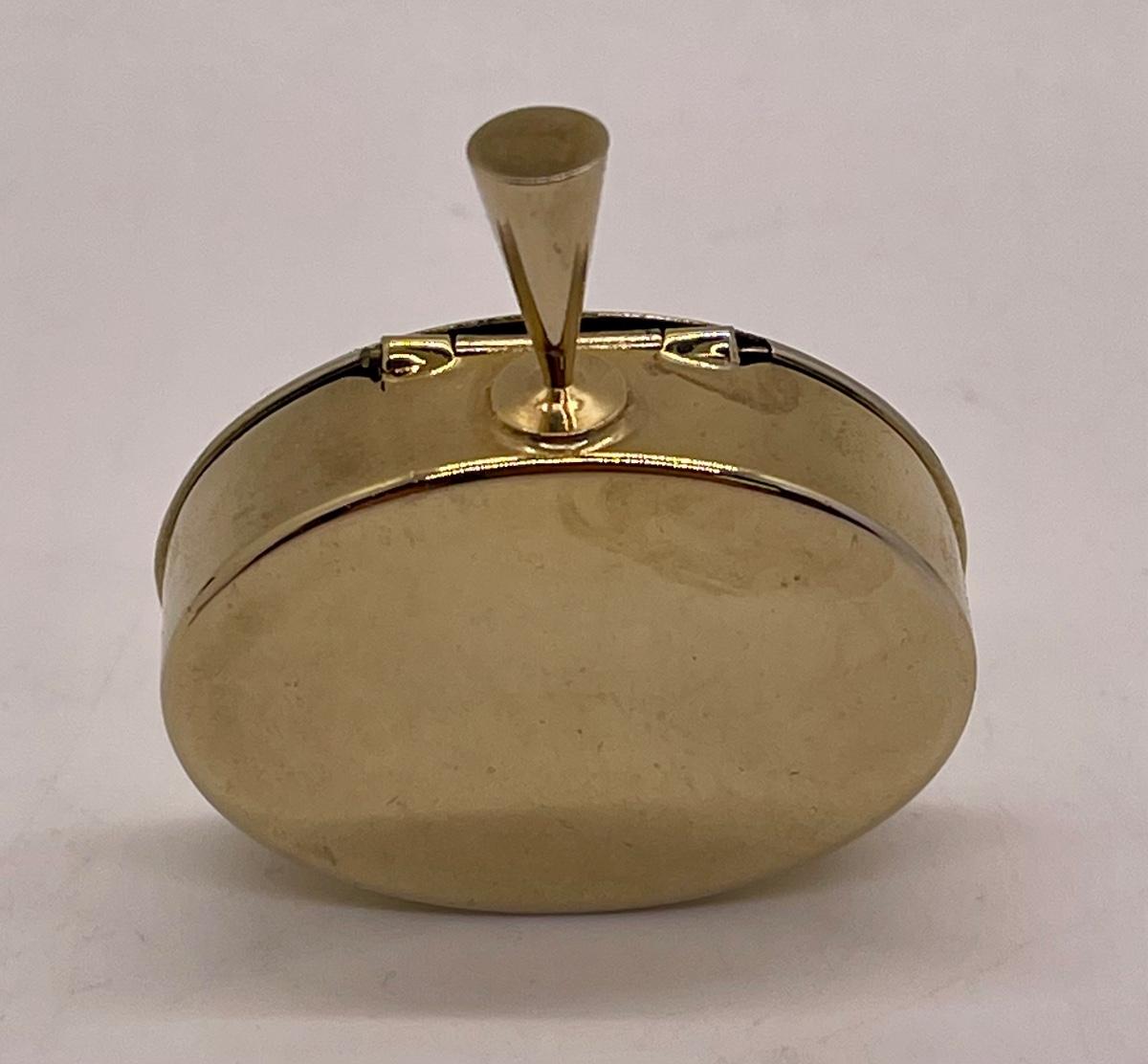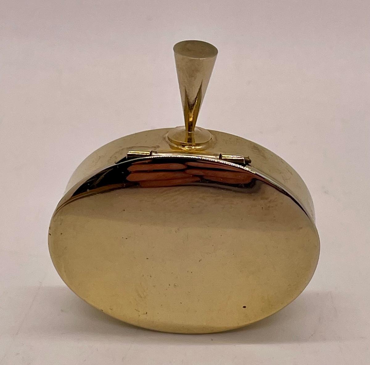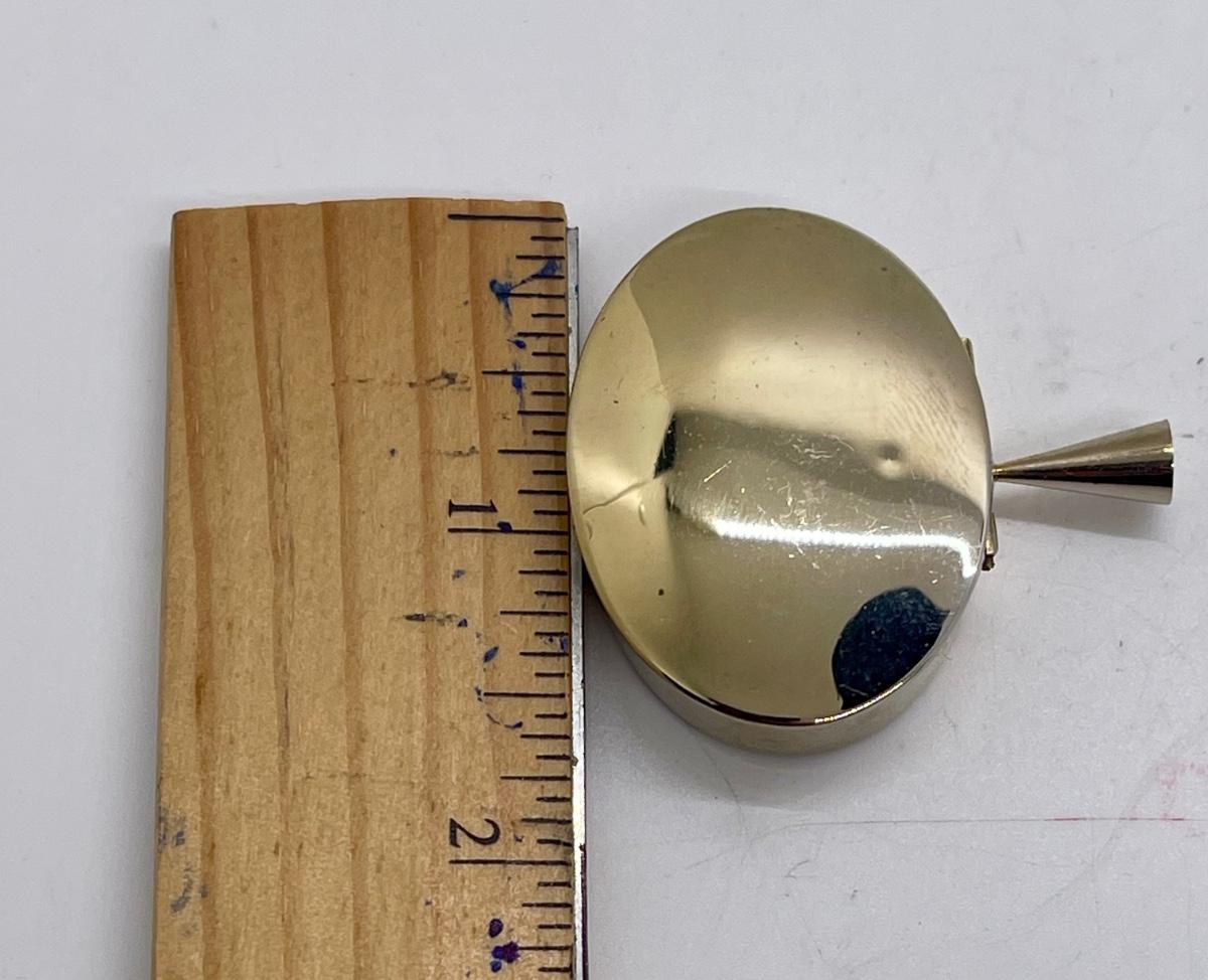 Oval metal box with a small handle or hanger. No mfg. mark or other identification. In good condition.