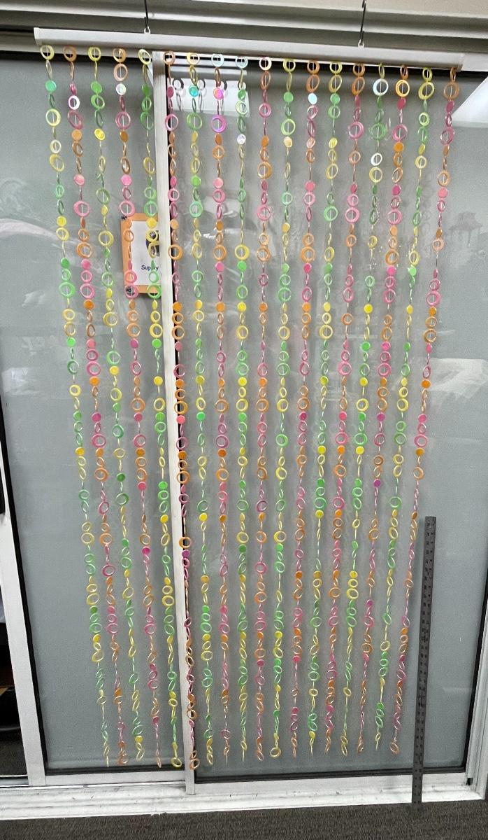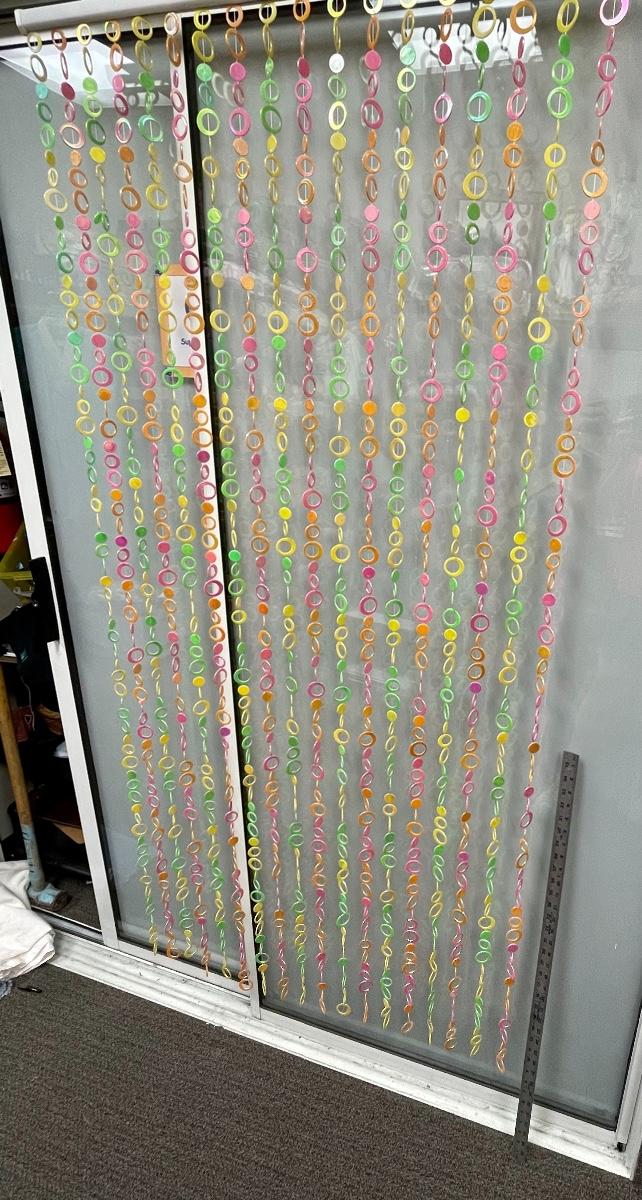 Funky Bright Colored Plastic Beaded Curtain Wall Hanging. About 6' length.