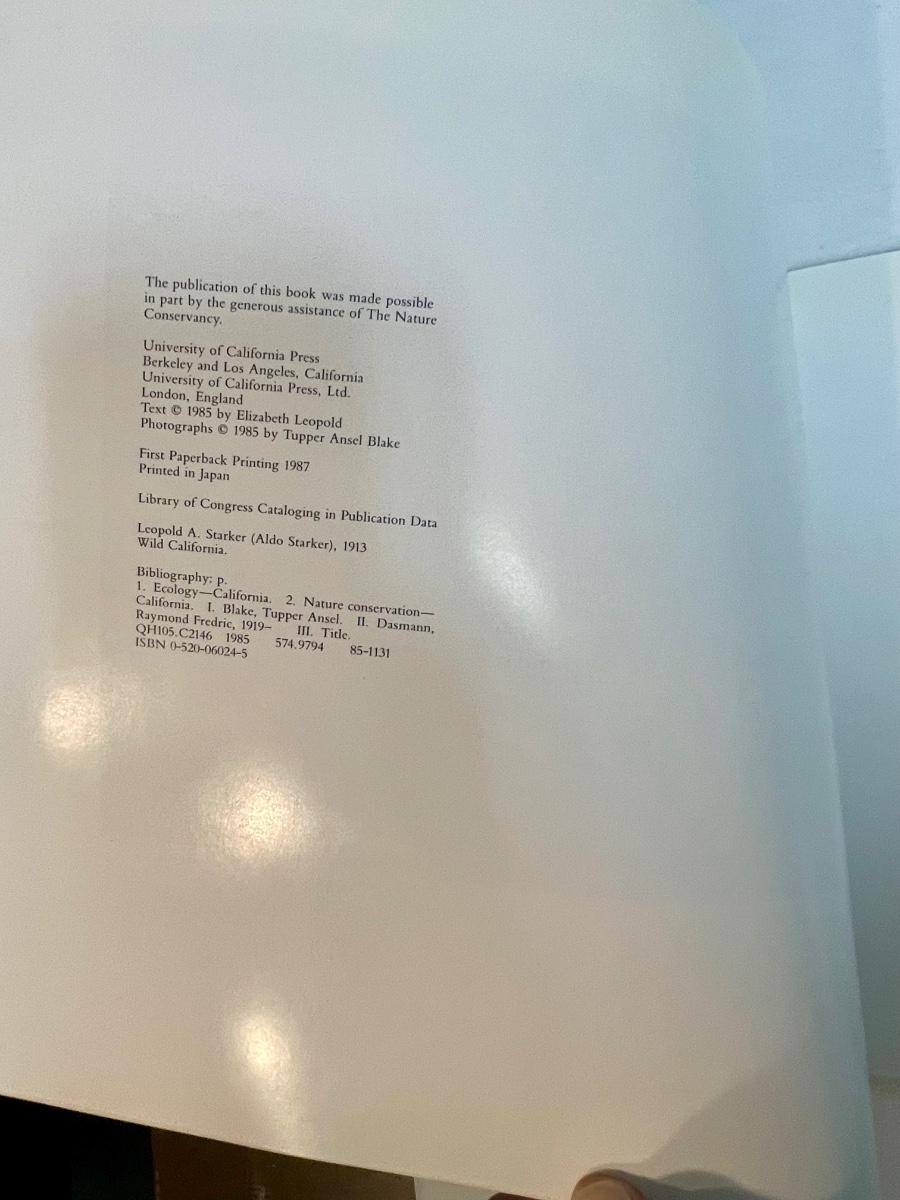 Published in 1987. Lots of outstanding color photos of natural landscapes and wildlife across California.