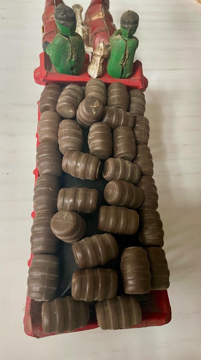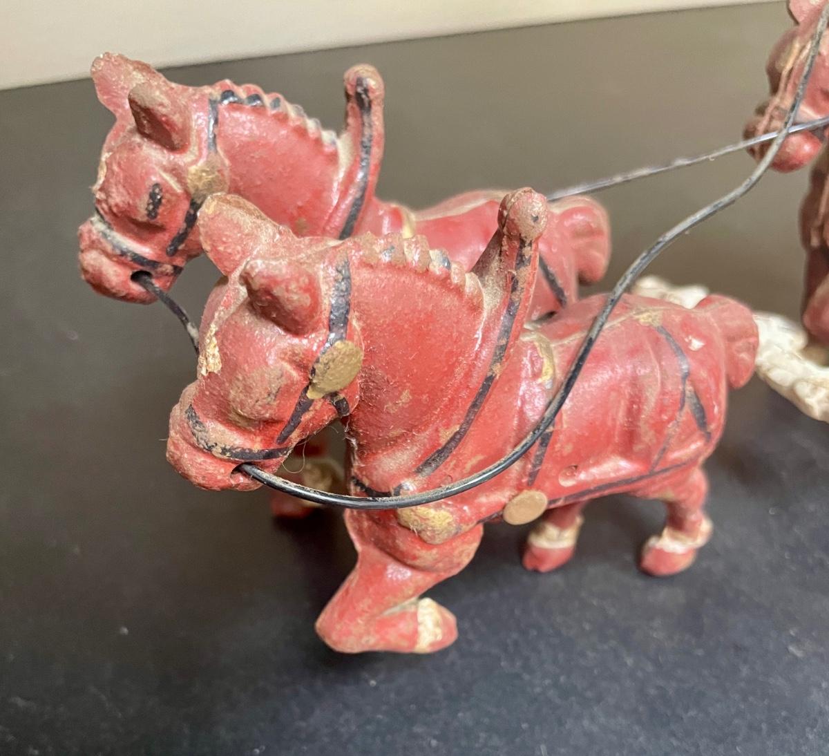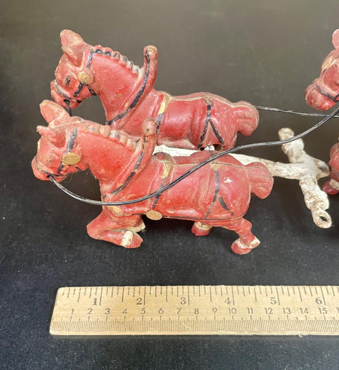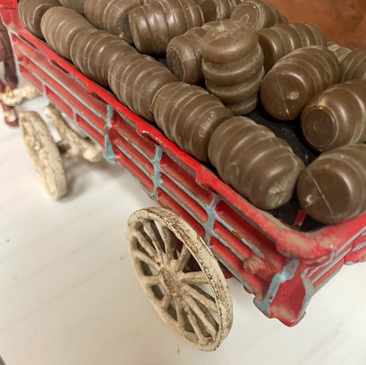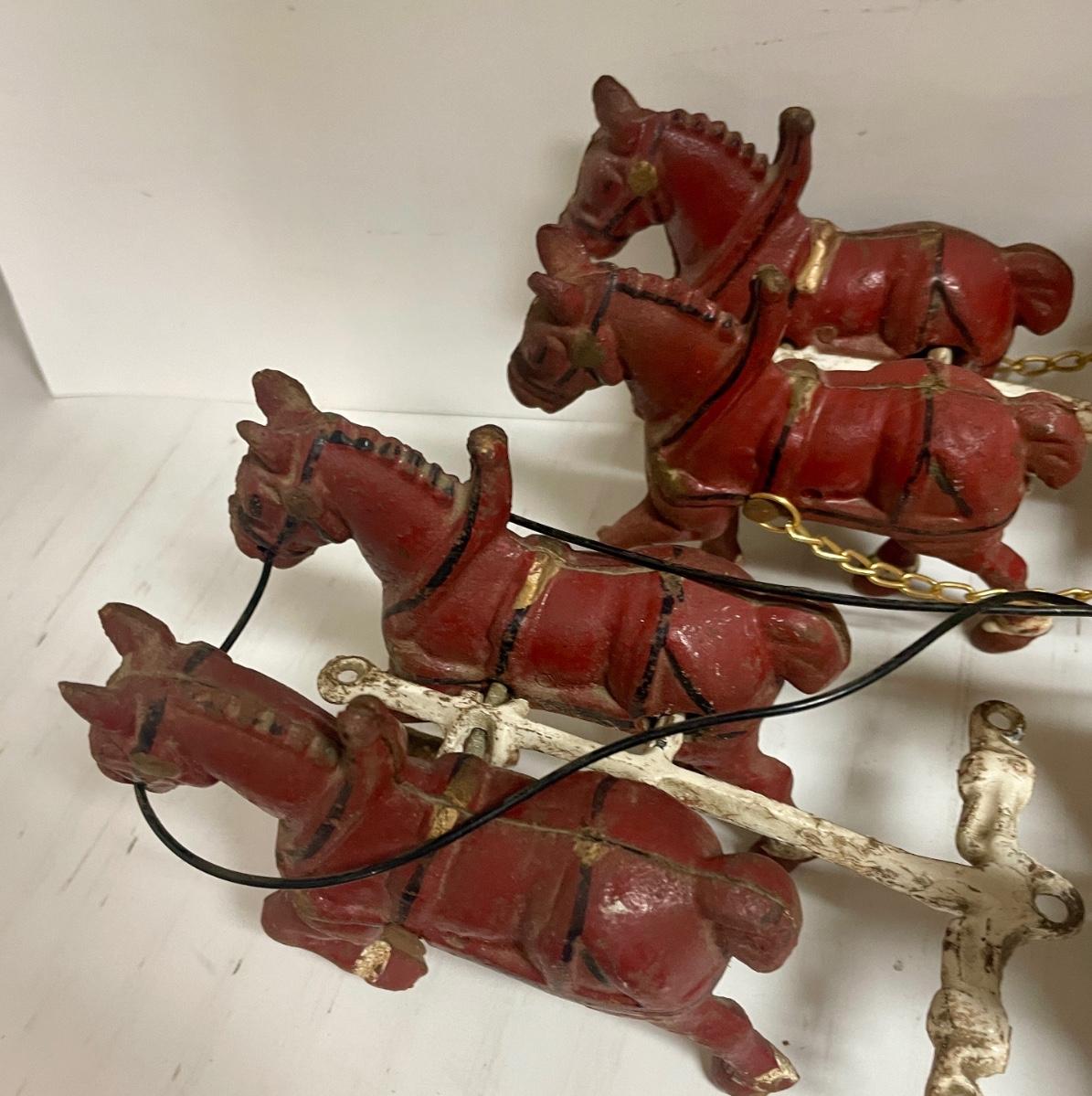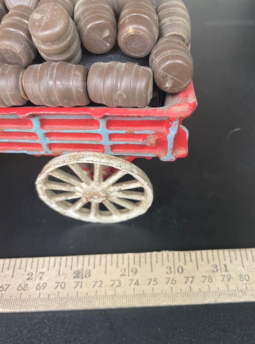 Vintage Cast Iron Toy 8 Clydesdale Horses & Wagon, Beer Barrels, 2 Drivers & Dog