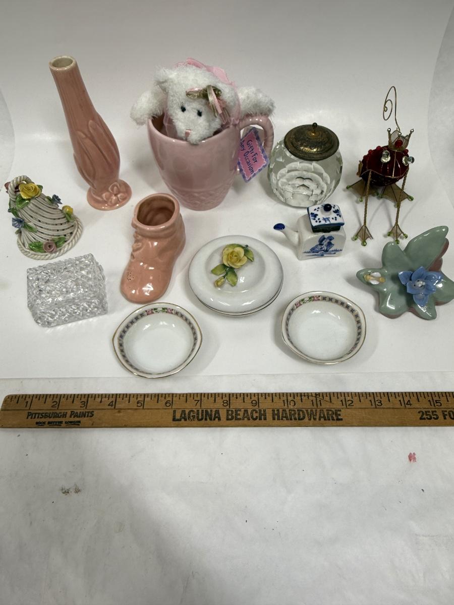 Fun little mix of very small items ranging from 1-5 inches high. Most are in good used condition, some have minor defects.