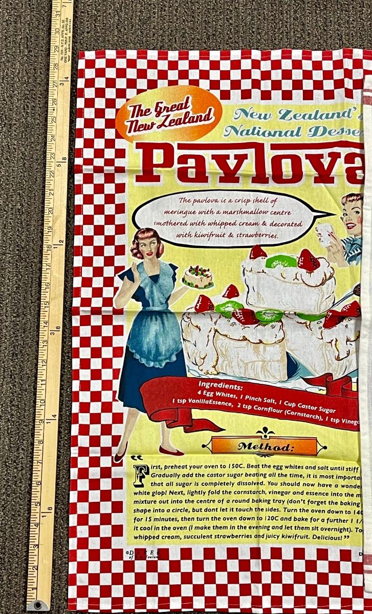 Set of 3 Novelty Dish Tea Towels Carrot Cake Dessert New Zealand Souvenir Chicken. In good previously owned condition. The carrot cake recipe towel still has original sales tag attached.