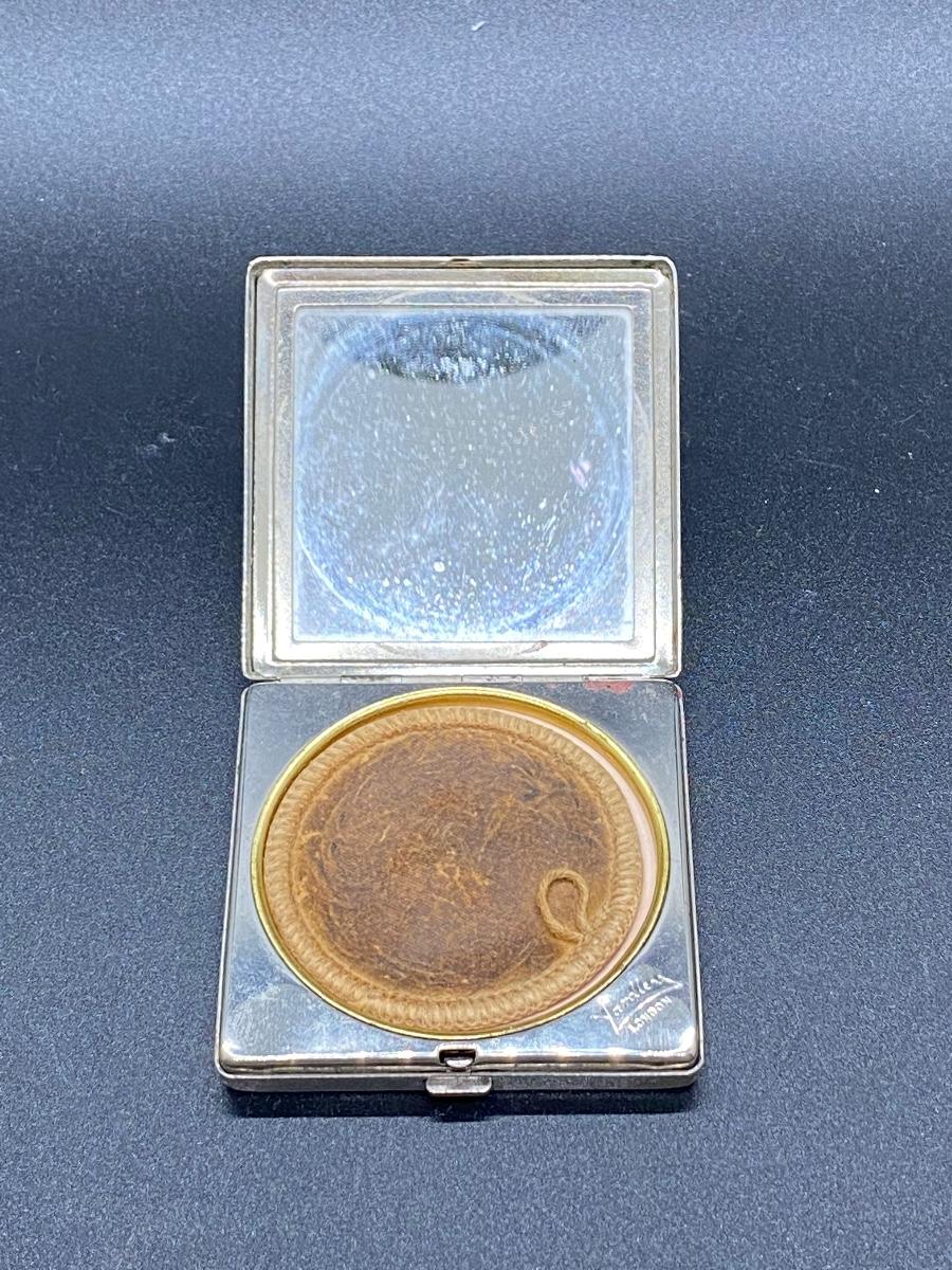 Vintage Yardley London Make Up Powder Mirror Compact. Still has the applicator puff and some powder. Silvertone case. Wear from use and age.