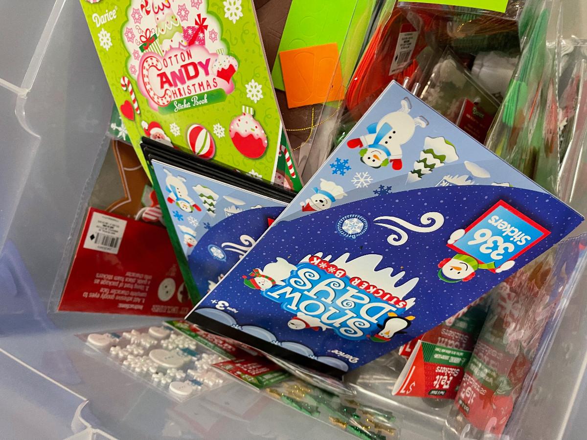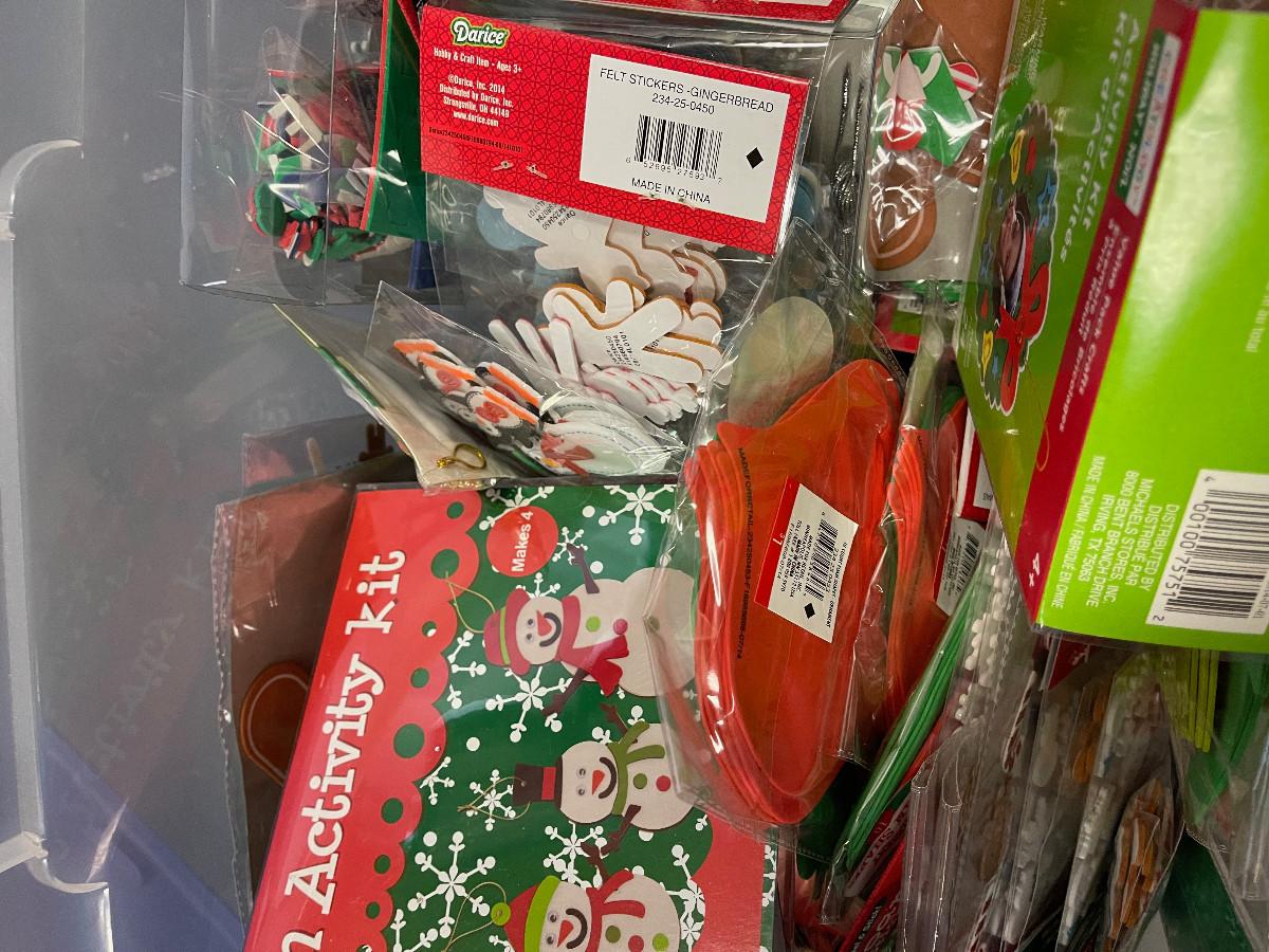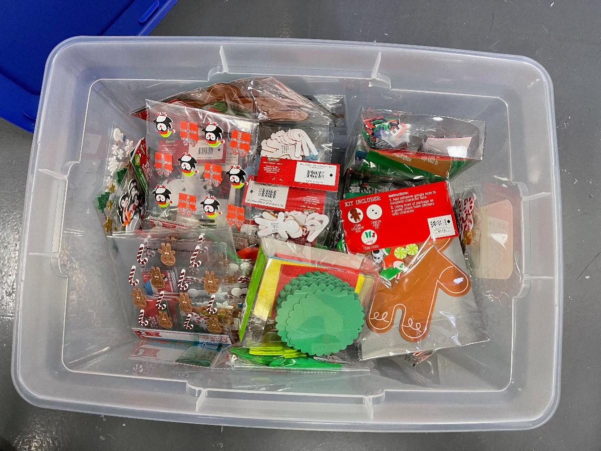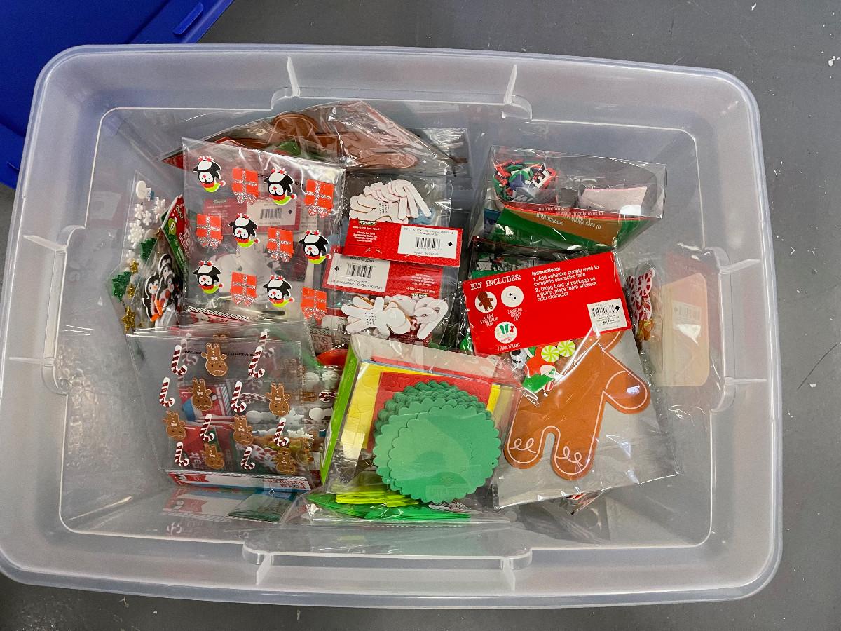 Tub Full of Craft Items for Kids.