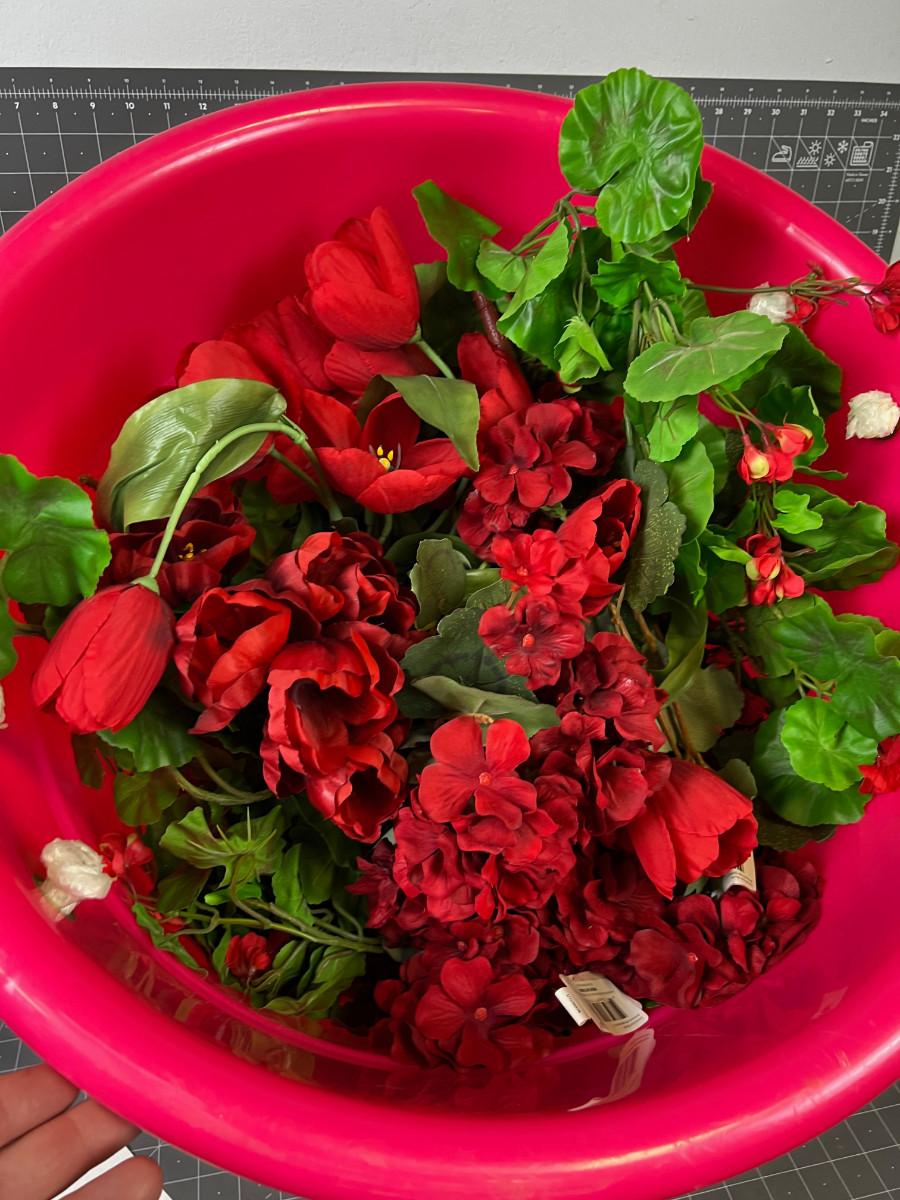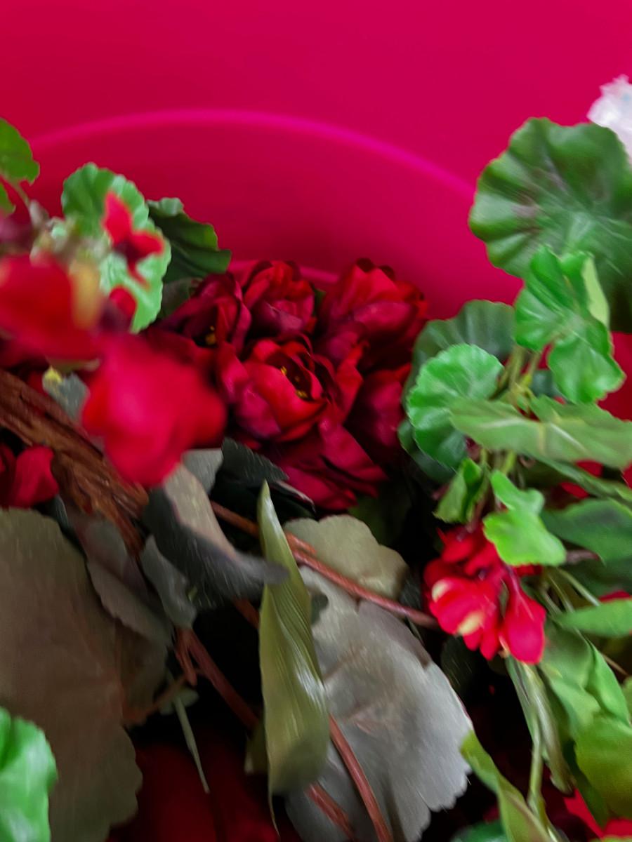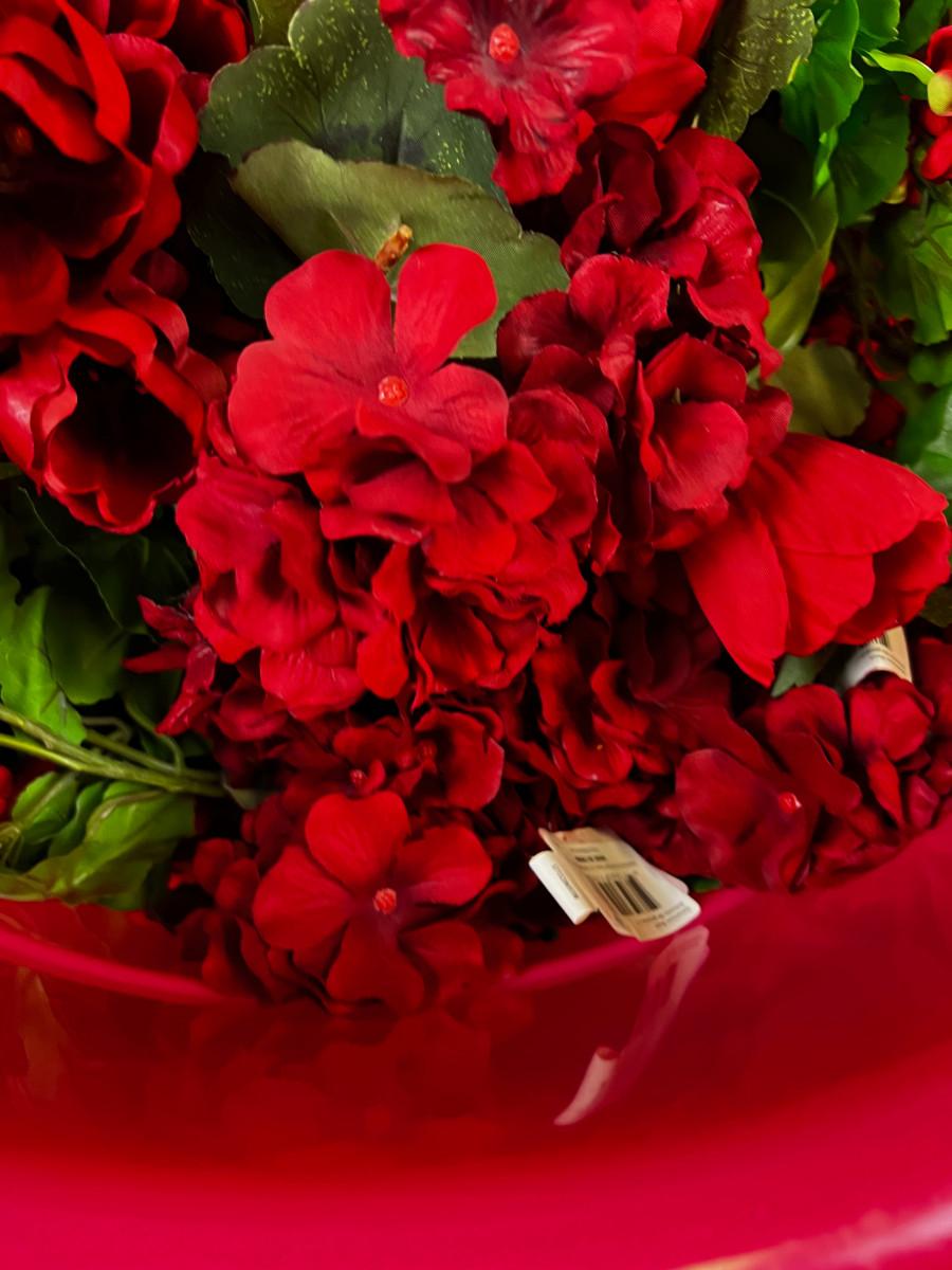 Tub Full of Red Silk Flowers Geranium & Tulips