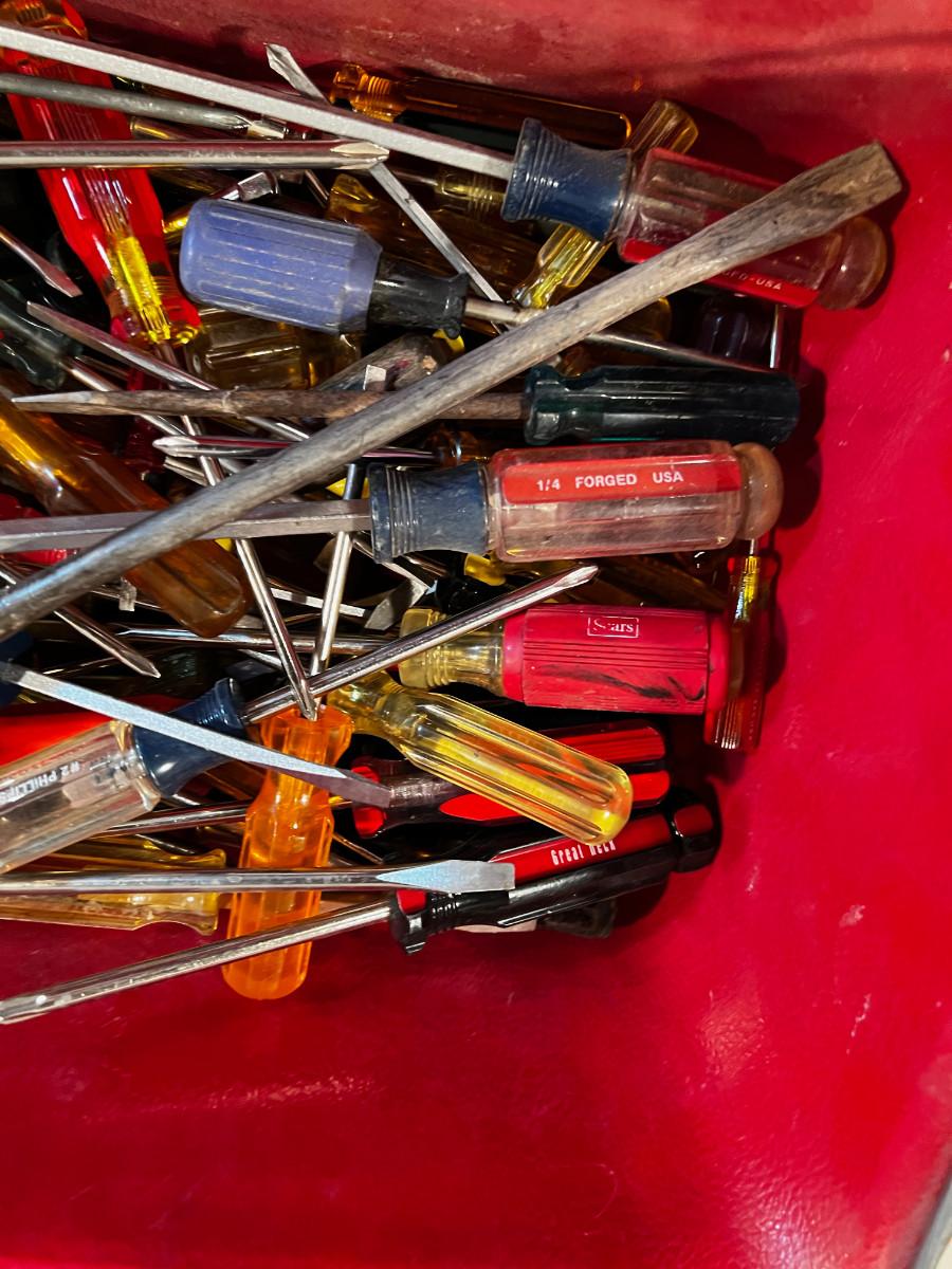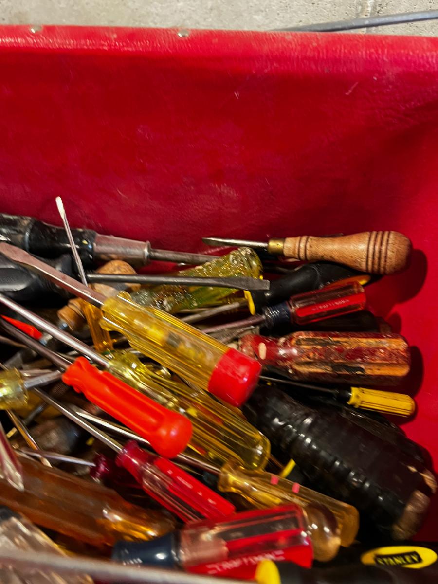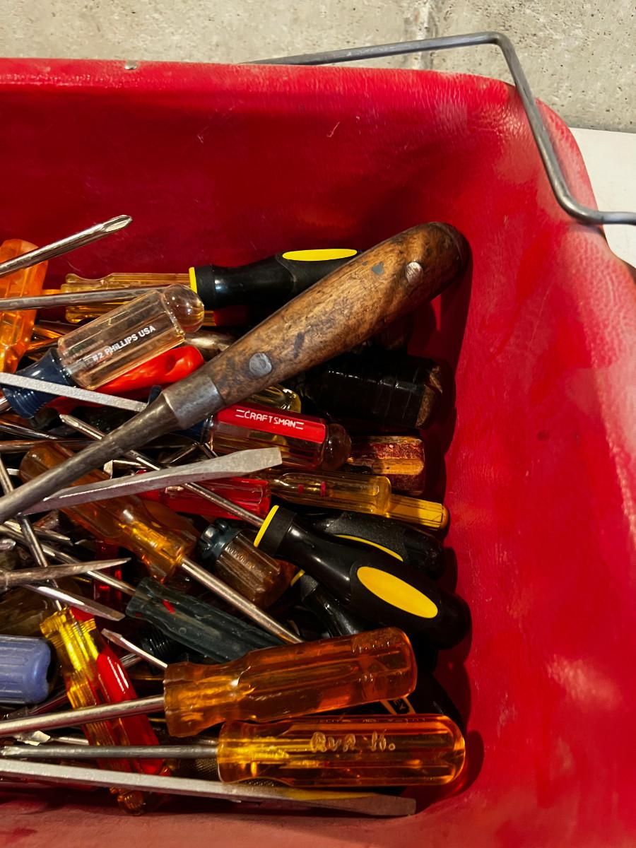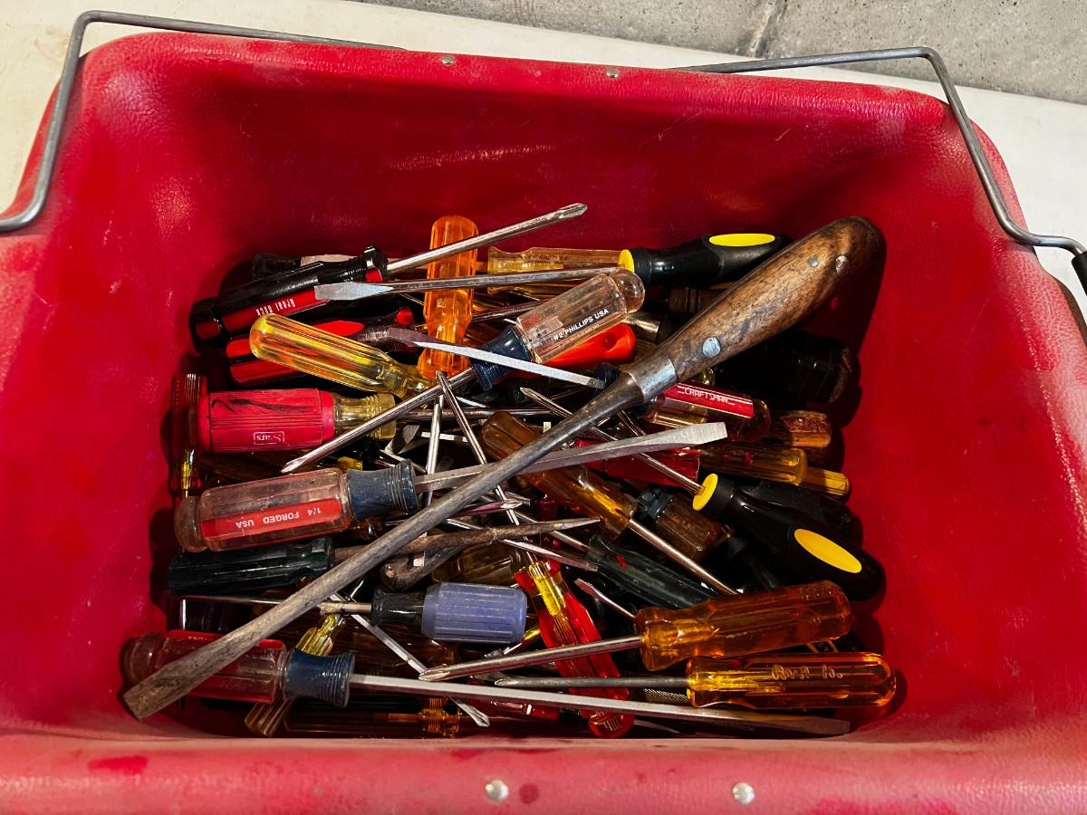 Tub Full of Screwdrivers All Types.