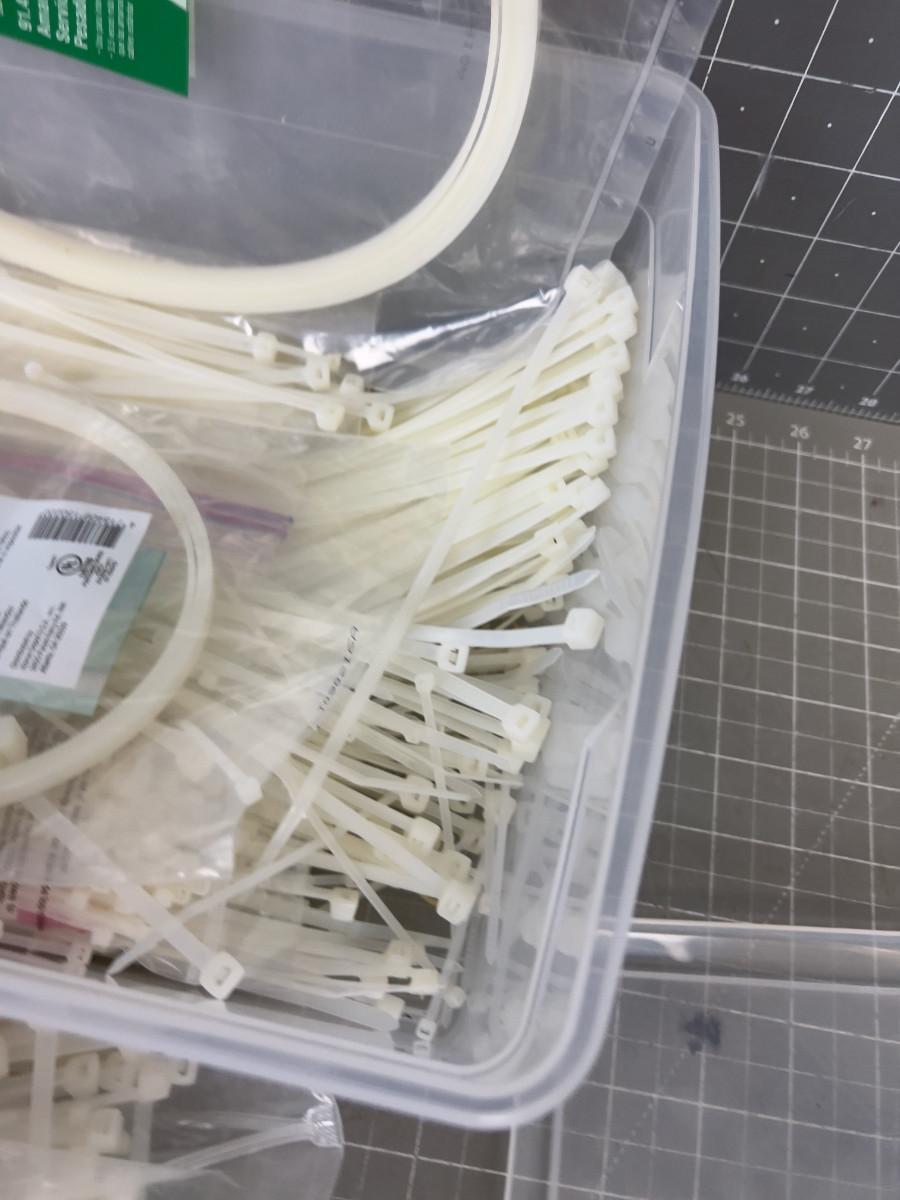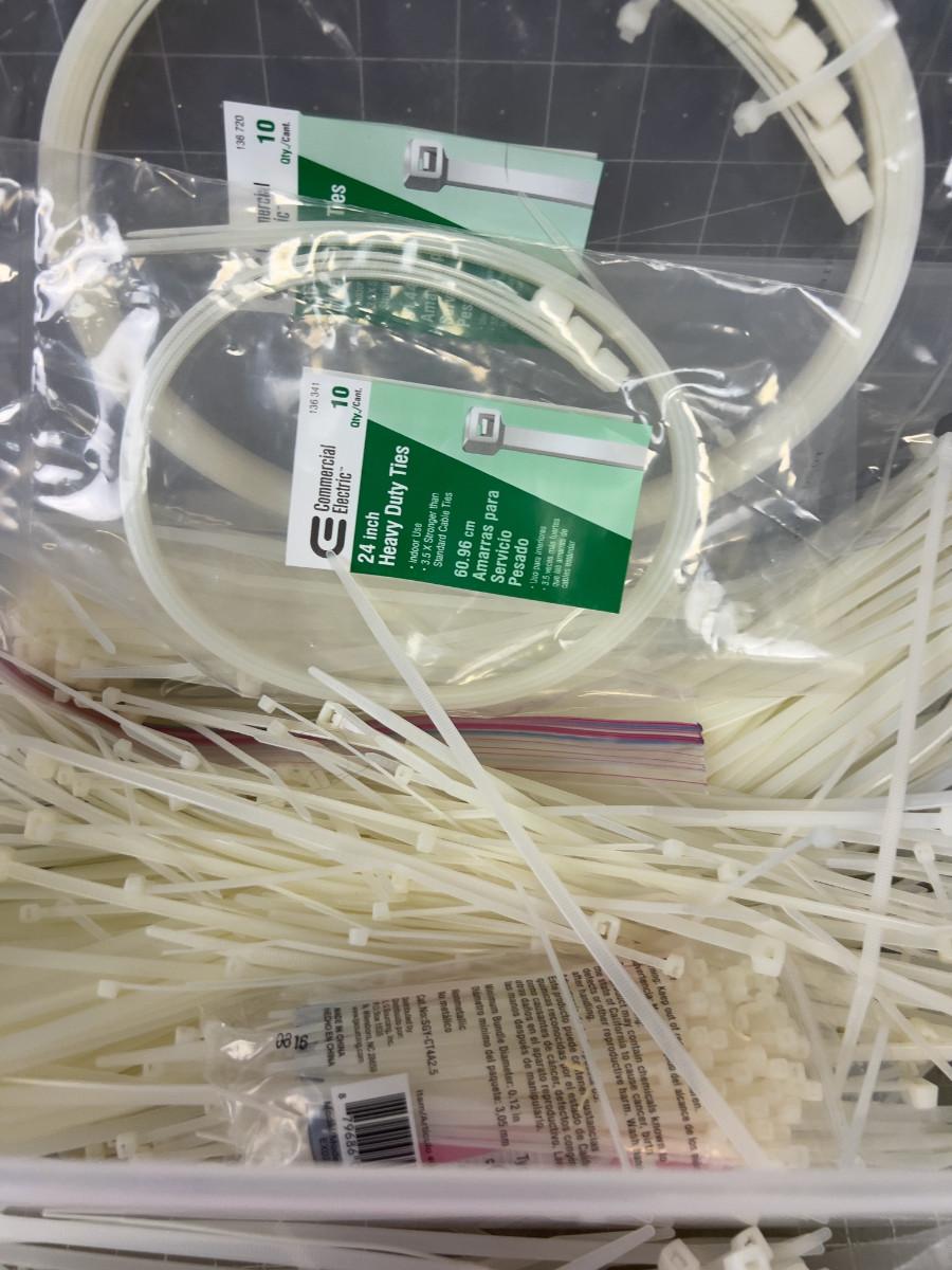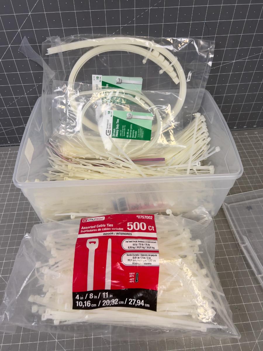 Tub full of Various Sizes of Cable / Zip Ties