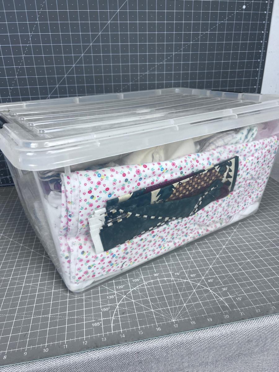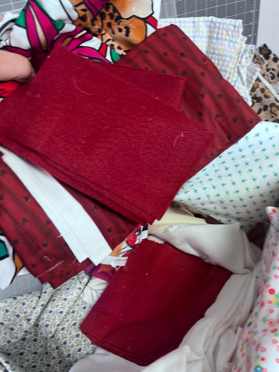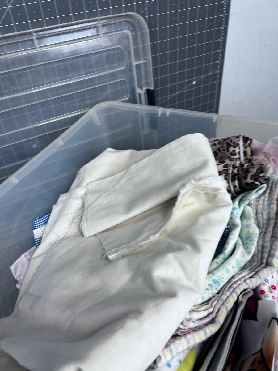 Tub of Fabric. Various sizes and colors