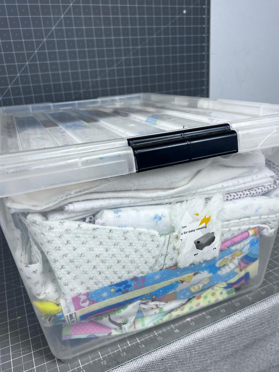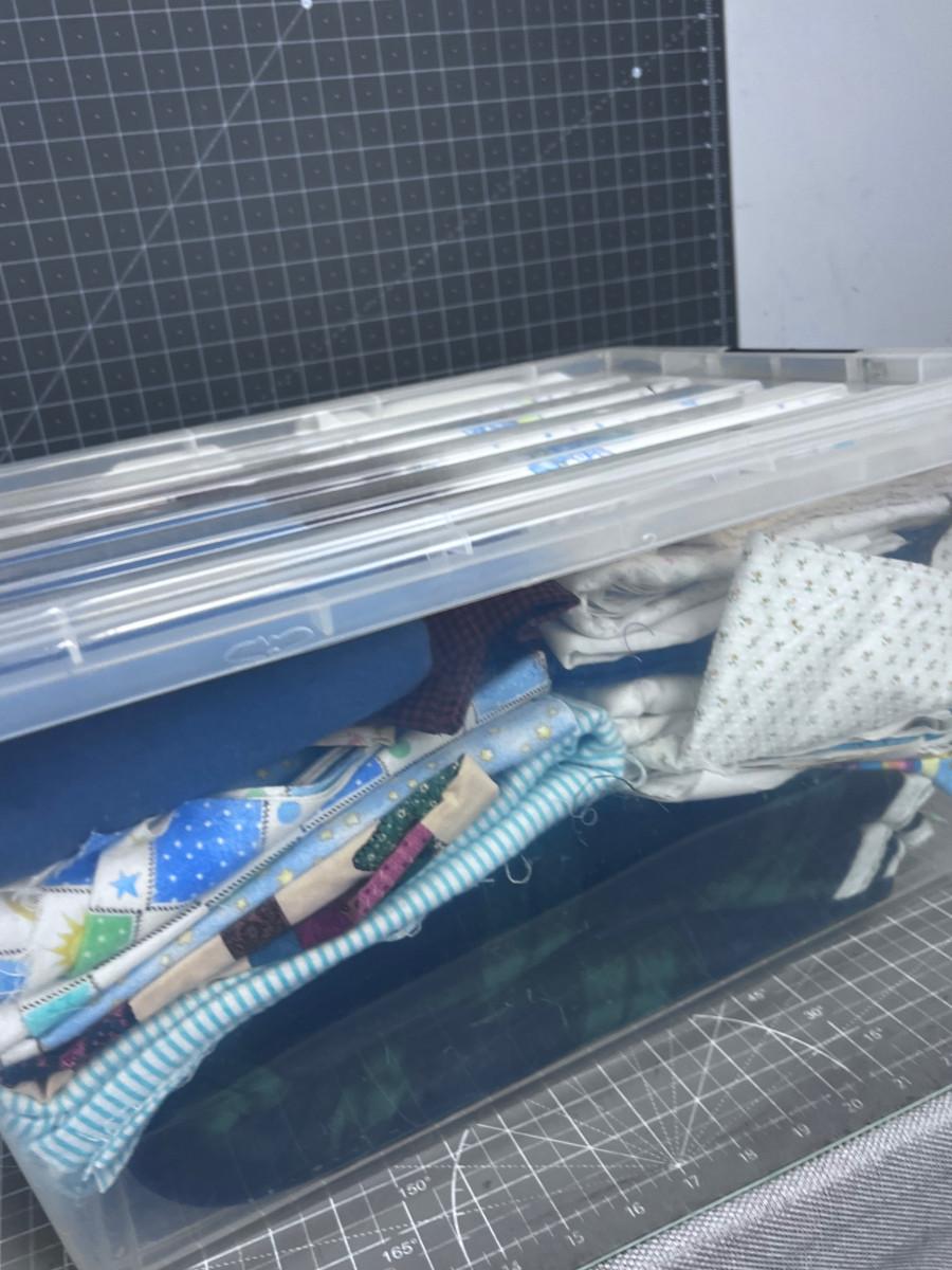 Tub of Fabric. Various sizes and colors