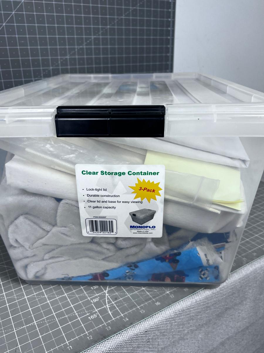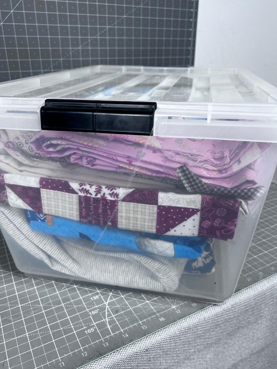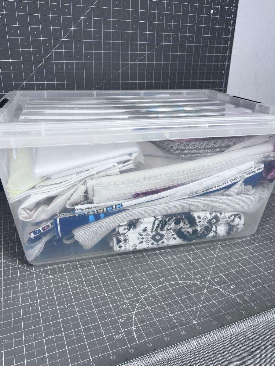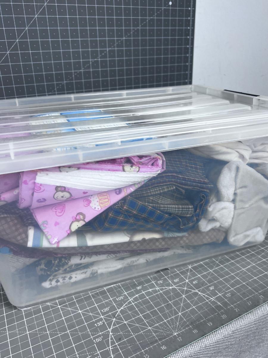 Tub of Fabric. Various sizes and colors