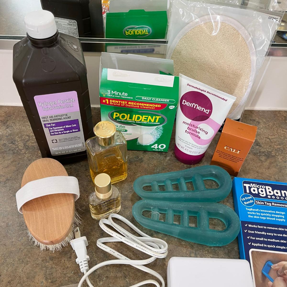 Tub of bathroom supplies