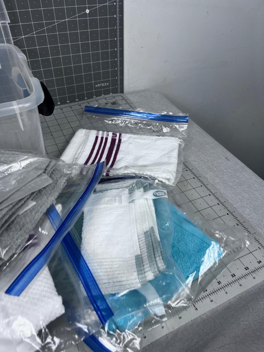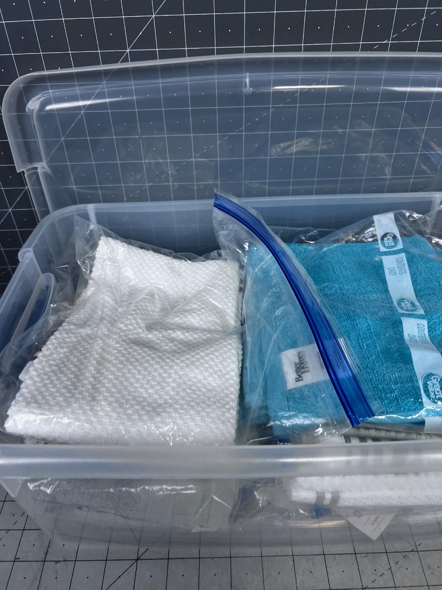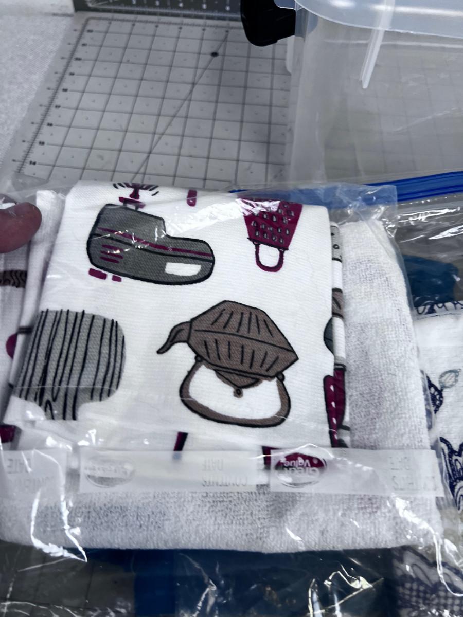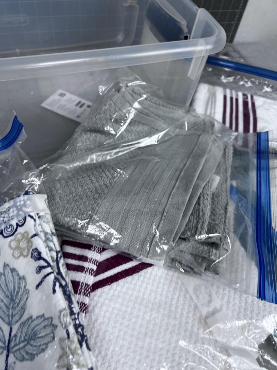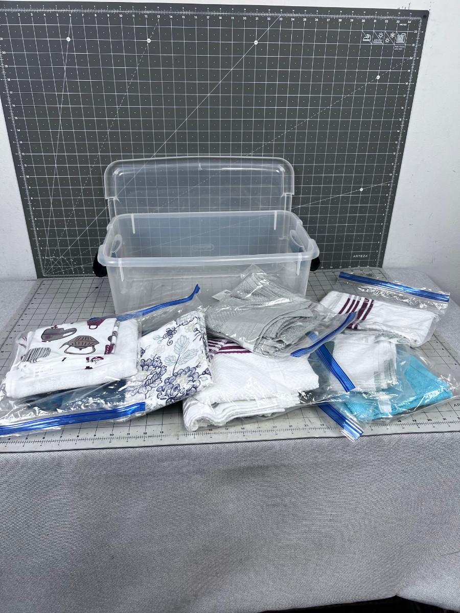 Tub of Kitchen Linens