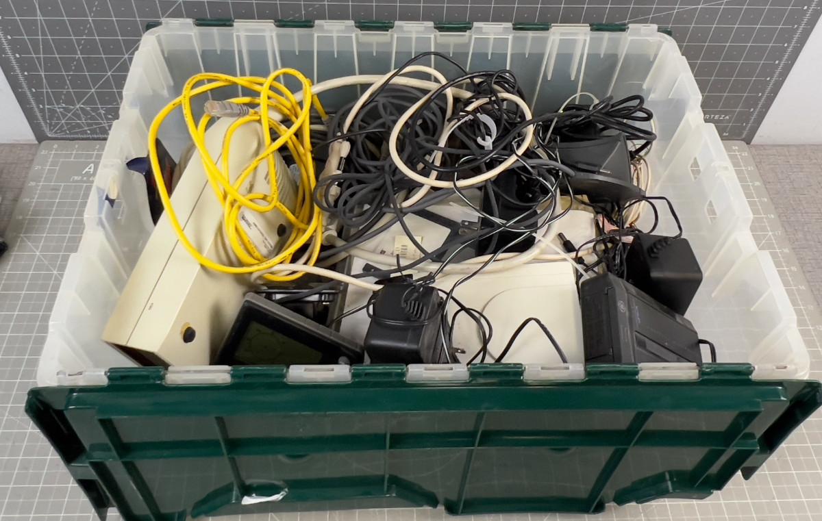 TUB Of Old Electronic, Wires, Mouse, CD Player - Tub included