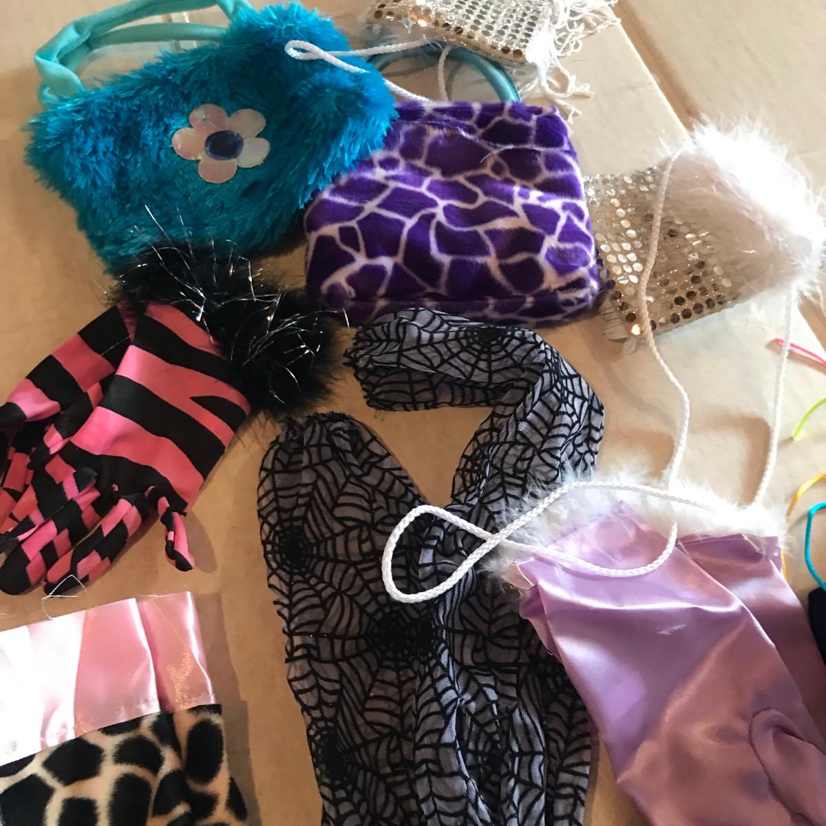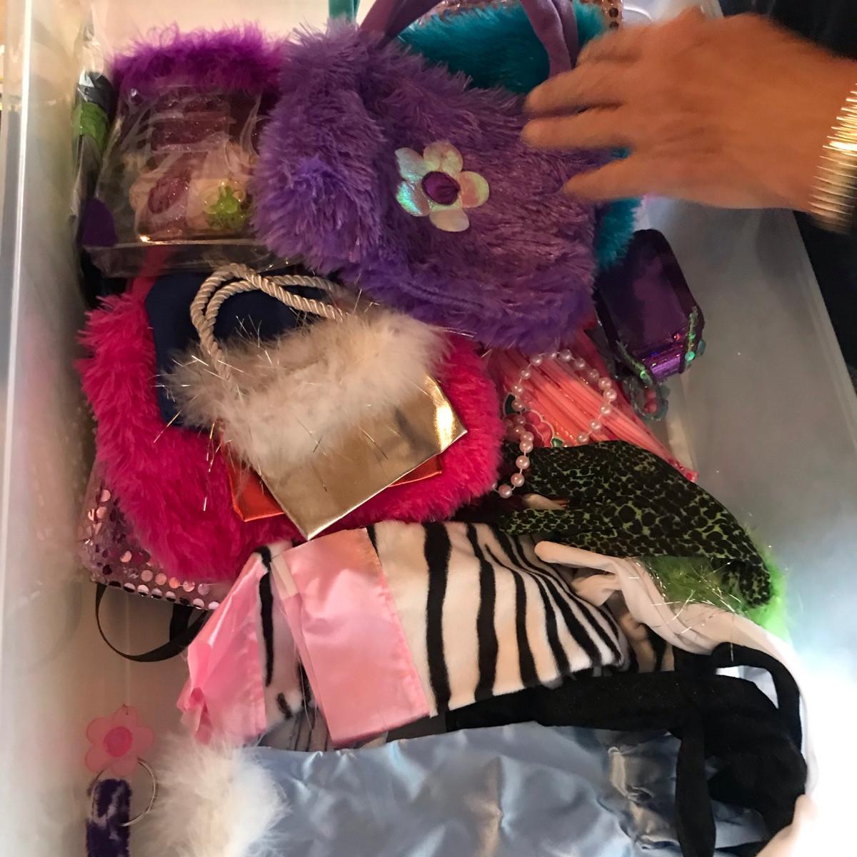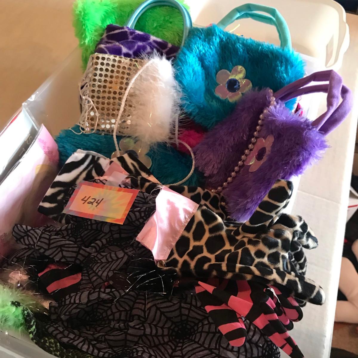 Tub of Purses, Clothes, and other girl dress up time stuff