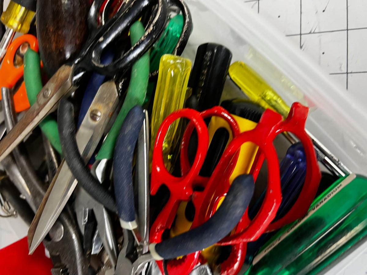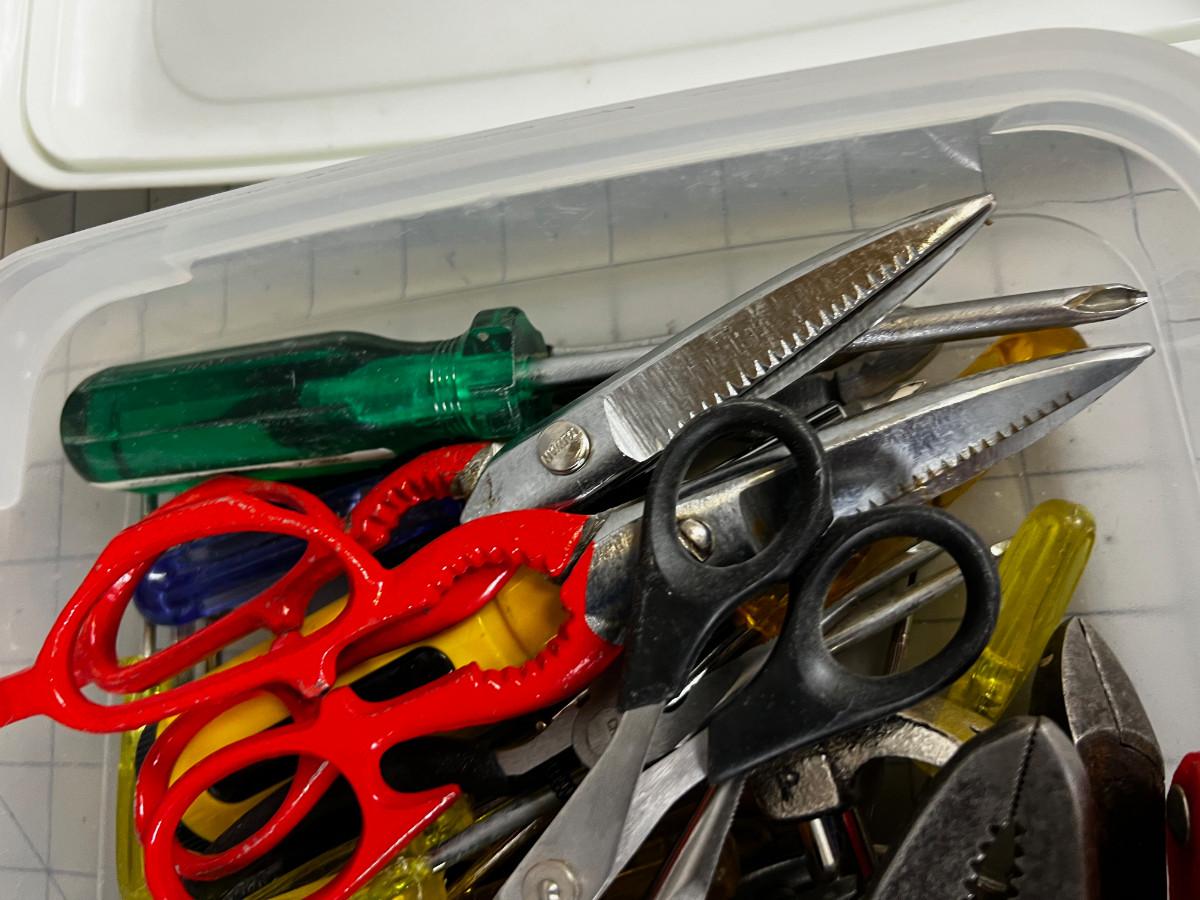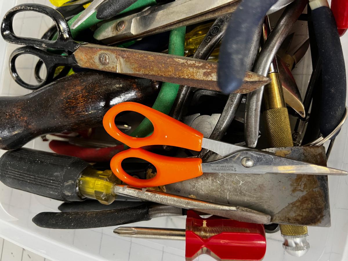 Tub of Tools: Screwdriveivers, Putty knife, Plyers and wire cutters