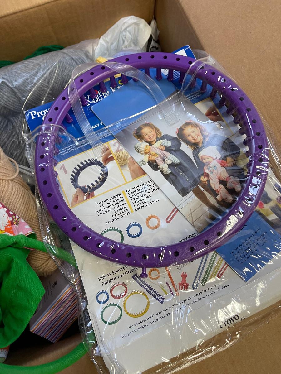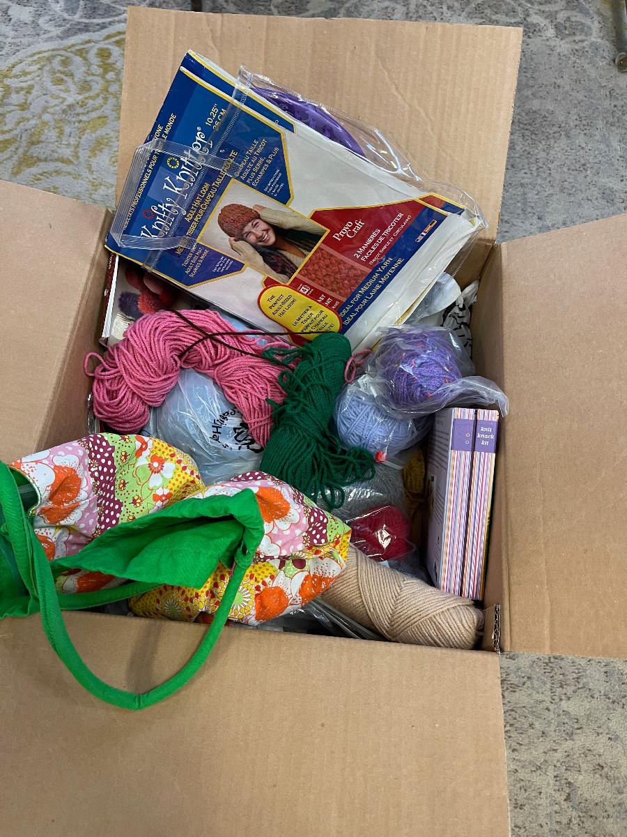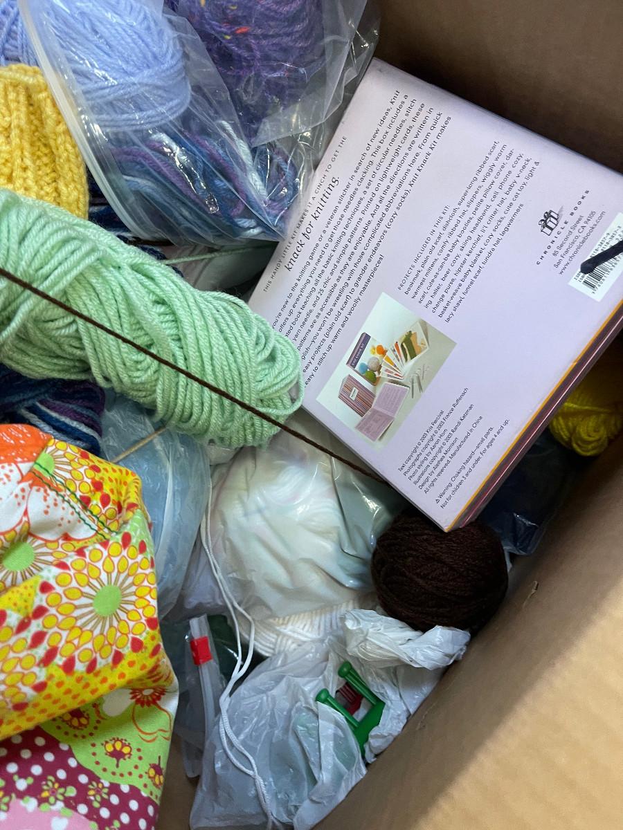 Tub of Yarn, Hat rims makes and Books bags etc.