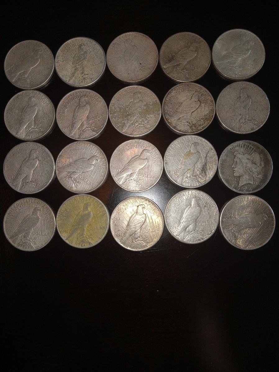 Tube of 20 various dates peace dollars