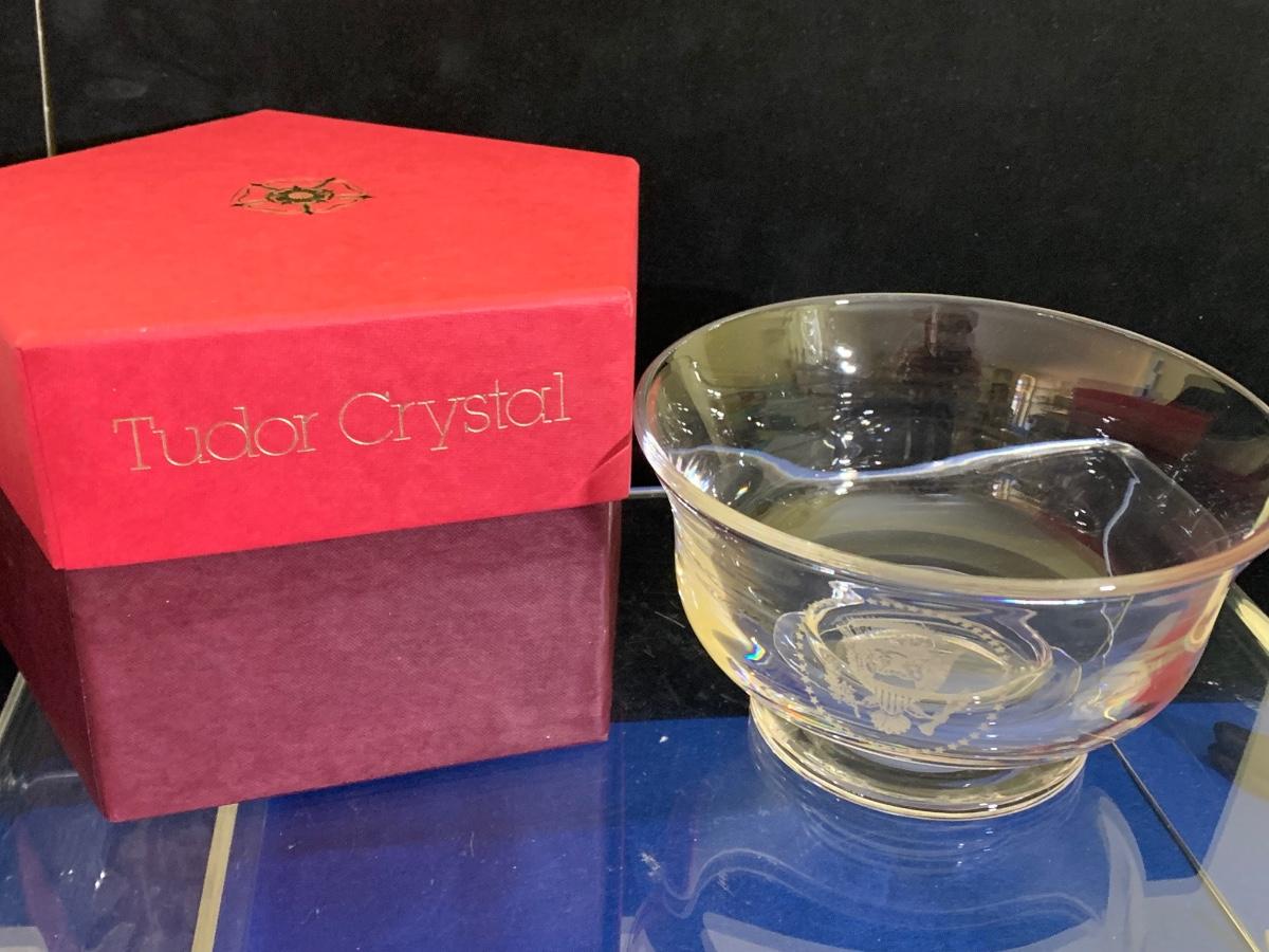 Tudor Lead Crystal Bowl Presidential Seal New In Box
