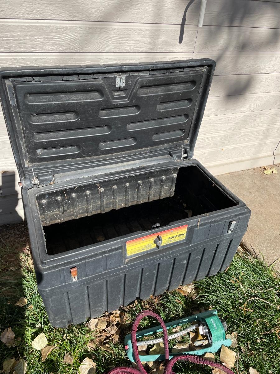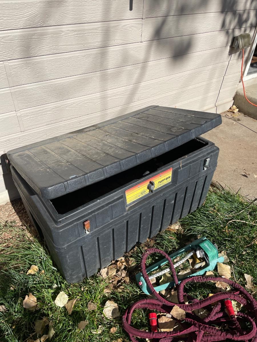 TUFF STORAGE BIN WITH HOSE AND SPRINKLERS